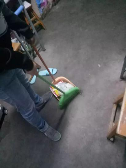 同学们准备好笤帚、簸箕、墩布等工具并对各自宿舍及其楼道和周围环境,进行了细致入微地打扫。