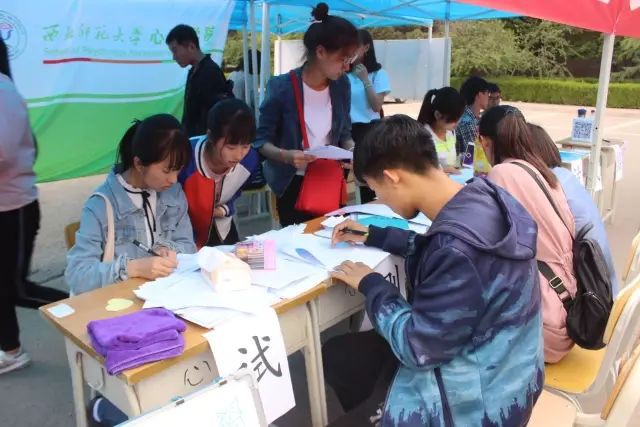 此次系列活动一改以往浓厚的学术氛围,巧妙地将创新创业主题思想融入其中。主要内容包括魅力专业大比拼、学术论坛促提升、成长故事分享会、创业创新创未来、学院主题展风采六大模块。其中,在学院主题展风采之户外心理测量环节中,同学们完成了主观幸福感、情商、气质类型、社会适应能力等心理问卷。在心理被试库环节中,我院研究生向往来的同学介绍心理科学研究以及心理学知识。