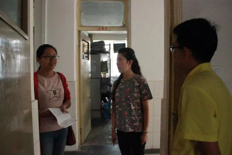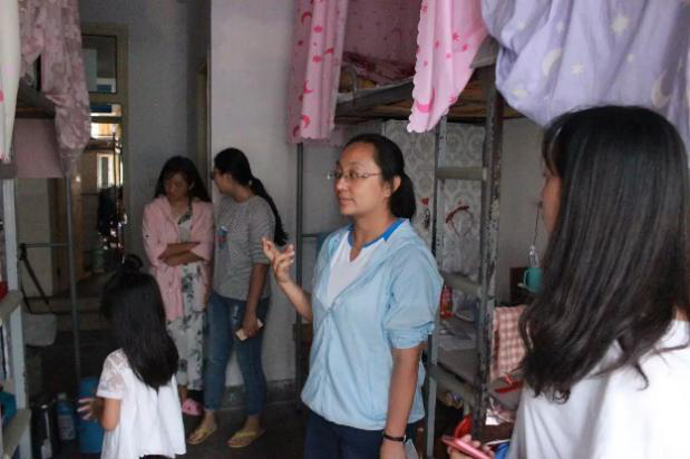 新学期伊始,为了具体掌握学生到校情况,切实保证学生人身和财产的安全。分管学生工作领导蒋玲,团委书记许琼英,兼职辅导员杨红,大二到大四各班班主任于8月20日晚走访学生宿舍。