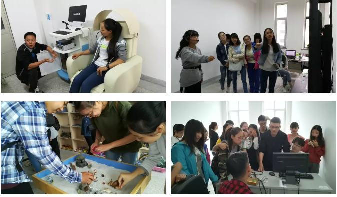 9月18日上午新生参观了ERP实验室、眼动实验室、身心健康实验室、测谎实验室、行为观察实验室、模拟驾驶实验室、沙盘、宣泄室、催眠放松室、基础心理实验室等。我院实验设施齐全,实验仪器众多,为实验的进行和专业的研究提供了先决条件。各实验室的负责人对各种实验仪器进行的深入浅出的讲解, 增强了同学们对心理学实验的兴趣 。