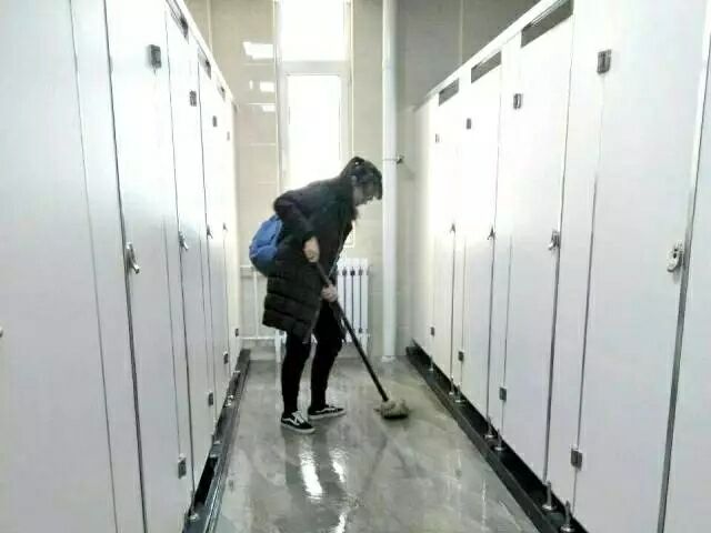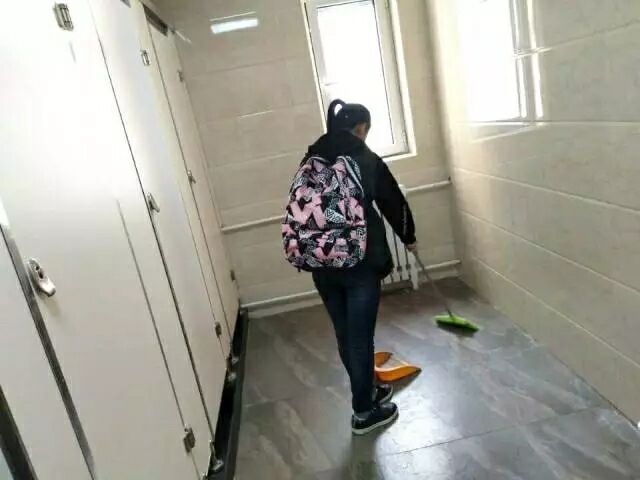 在活动中,同学们分工明确,扫地的、拖地的、擦洗手台的,各司其职,充分发扬了不怕苦,不怕累的精神,使卫生间的卫生环境有了很大改善。