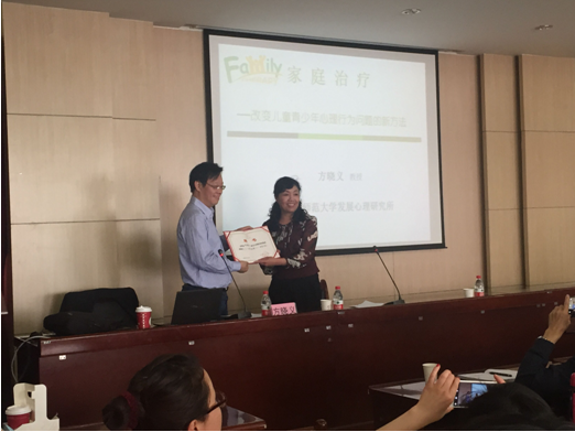 2016年5月20日,北京师范大学方晓义教授在10号楼D区会议室为我院师生作主题为《家庭治疗——改变儿童青少年的心理行为问题的新方法》的工作坊,工作坊由我院杨玲教授主持,我院近一百名师生参加了此次工作坊。