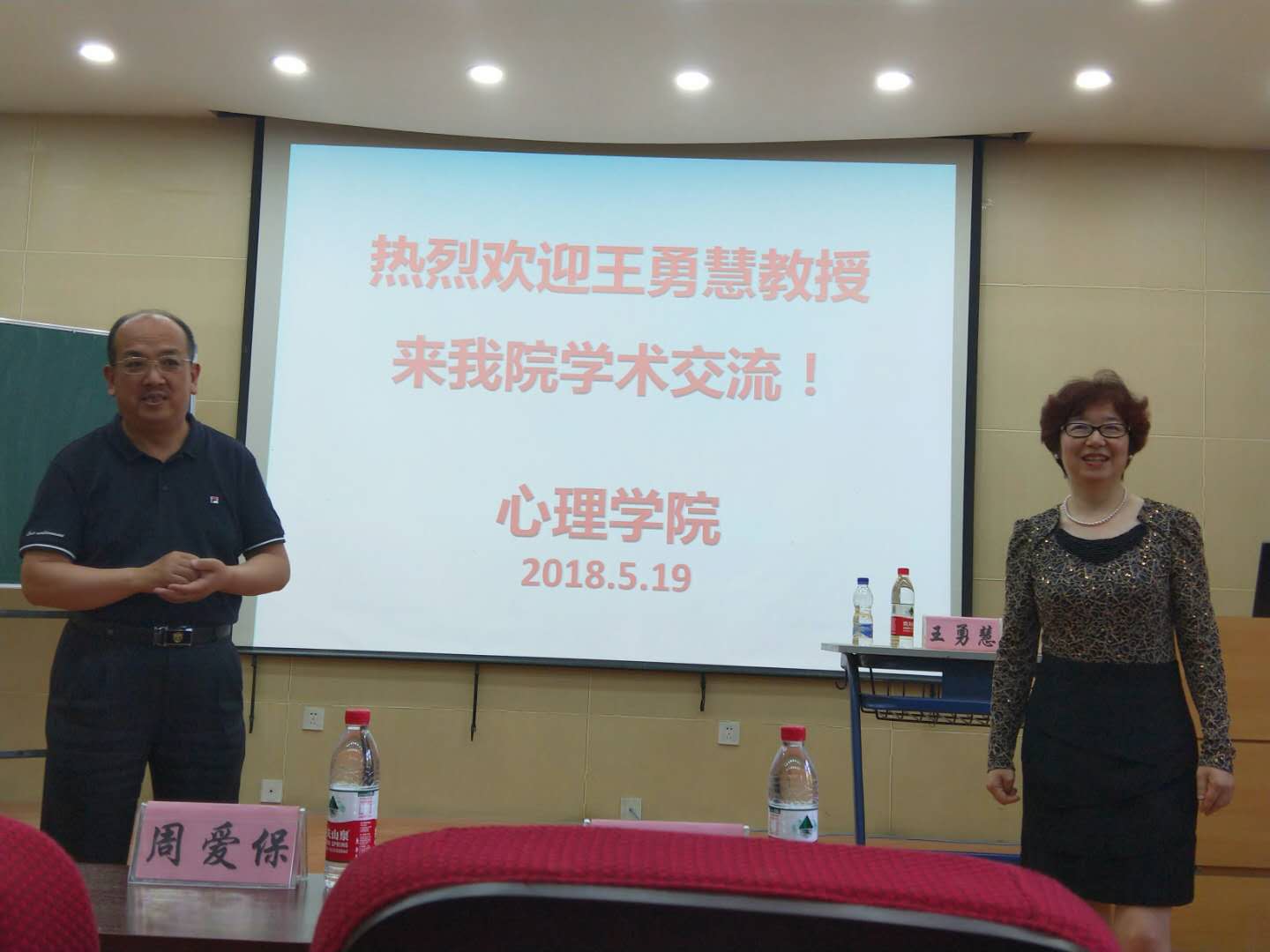 陕西师范大学新利体育教授,基础心理学博士生导师王勇慧博士受邀来我校做题为“注意研究中负启动现象的意义及研究进展”的学术报告,报告时间为5月19日(星期六)下午,地点为校本部9号教学楼区101室。报告由周爱保院长主持,近100余名师生参加讲座。