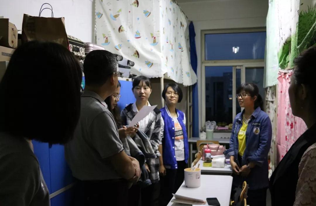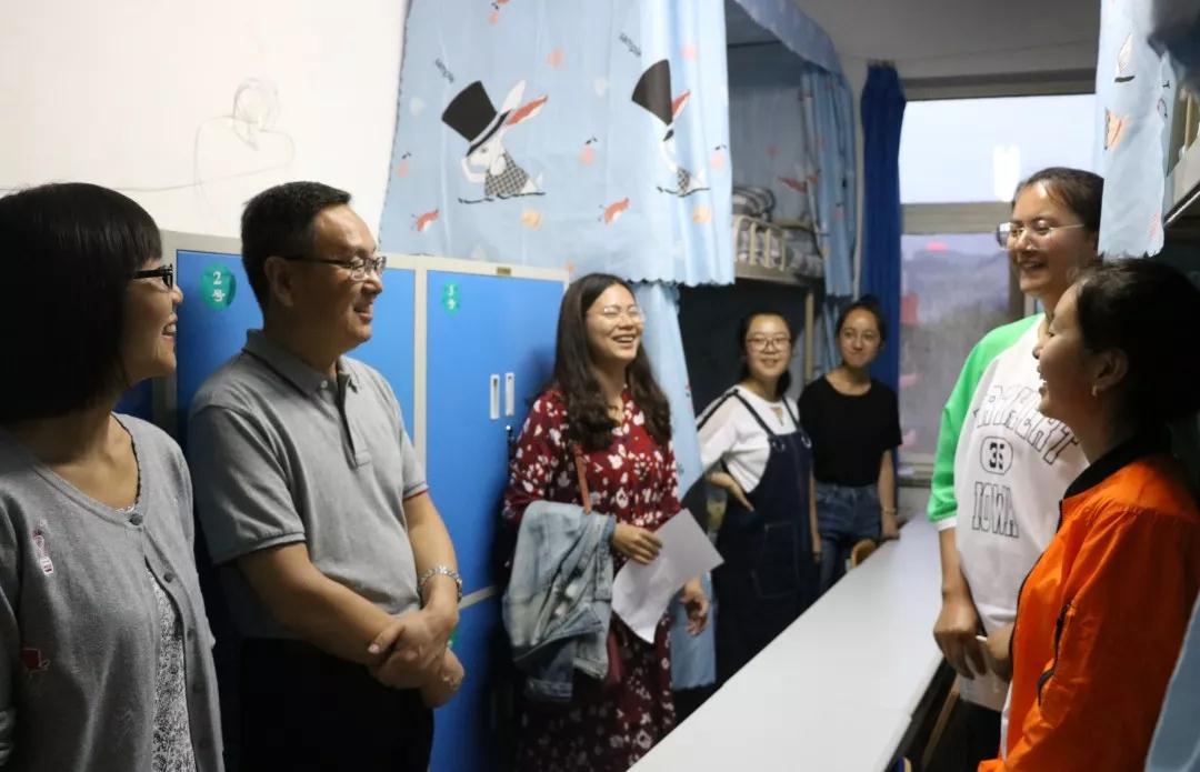 9月4日晚,新利体育党委书记刘慧阳,副院长丁小斌、赵鑫,负责学生工作的蒋玲老师,团委书记许琼英,辅导员刘海玲、孙浩、周嘉宁以及2018级本科新生班主任李世峰、朱雅雯老师走访了2018级研究生、本科生宿舍,为他们送去新利体育的温暖以及学院老师们的关怀。