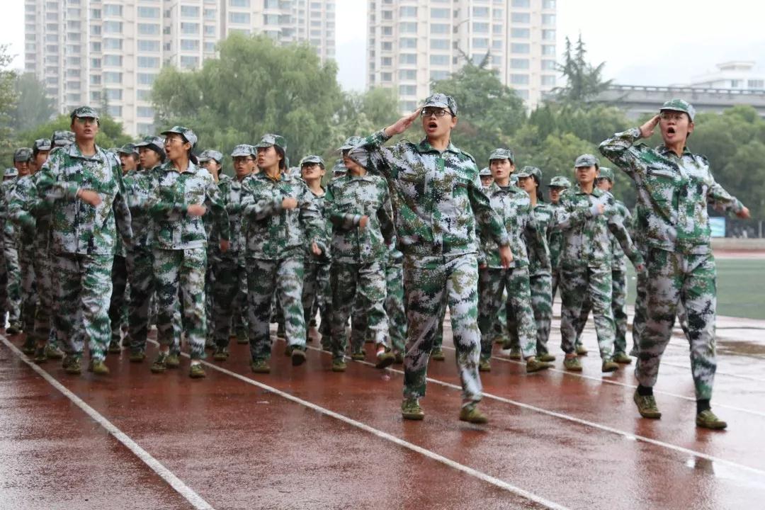 临近军训结束,天公不作美,阴雨绵绵,塑胶跑道上湿滑不堪,为军训的进行和会操表演带来不小困难。今日的寒风带了些冬天的气息,身着迷彩服的2018级新生们庄严肃立在东操场上,等待着会操表演的开始。