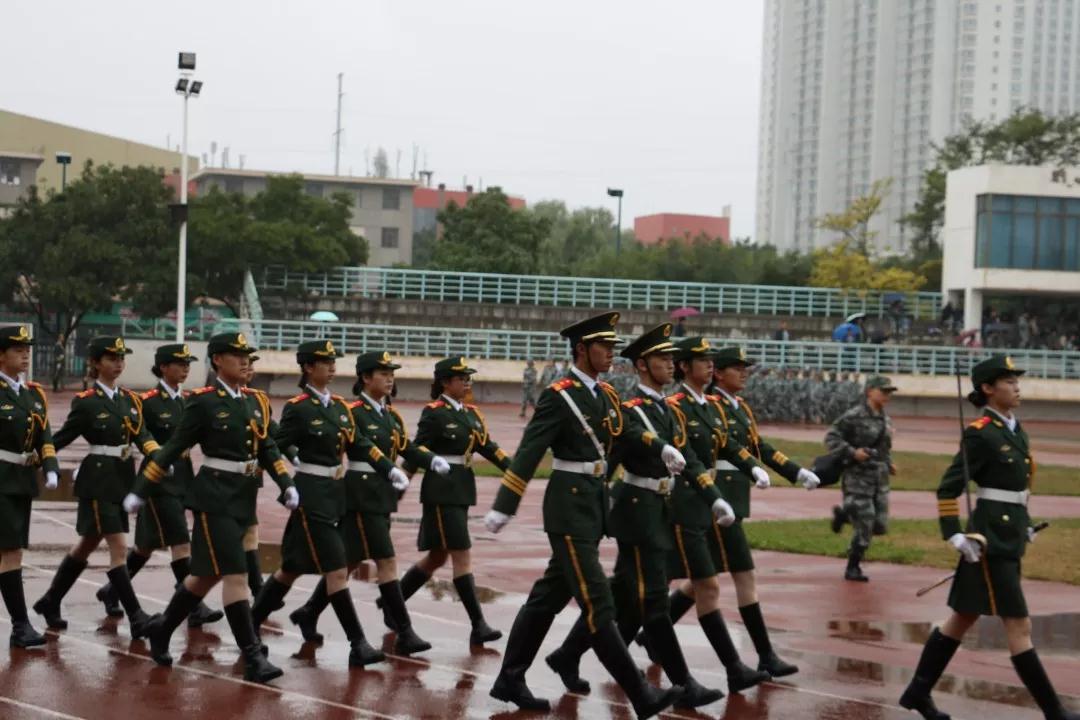 随着教官的一声令下,会操表演正式开始。冷雨不断冲击面庞,我院的2018级新生们却精神抖擞,迈着矫健的步伐向主席台走来,齐步转为正步,动作整齐划一,落地的脚步声坚实有力,展现出我院学生风采。