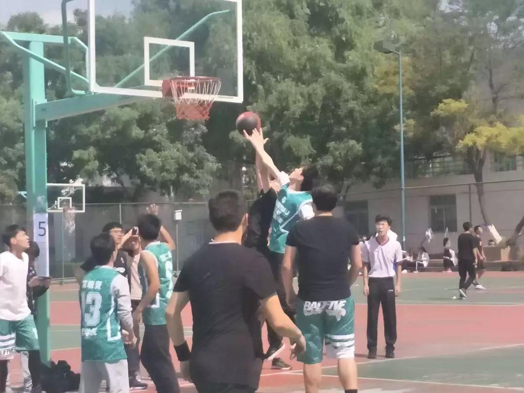 比赛继续,16级男生经过暂停及时调整,突破得分打破得分荒。17、18级男生丝毫不敢懈怠,从防守做起,进攻中相互配合,接连得分满满拉开差距。