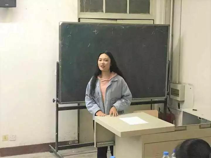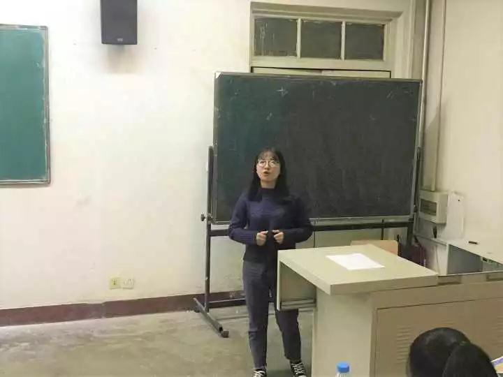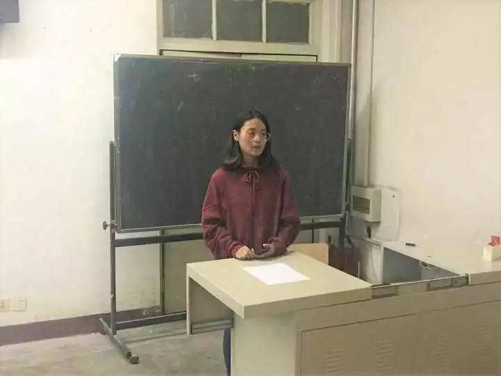 阮雅琪学姐代表“红色筑梦之旅,心光助推扶贫”实践团从实践内容及结果两方面做出介绍,并呼吁同学们为扶贫奉献一份力量。