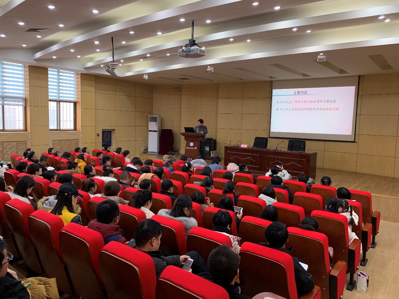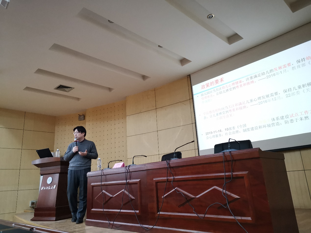 2019年01月05日下午,北京师范大学心理学教授、博士生导师伍新春老师在逸夫图书馆一楼报告厅做了题为“从人本咨询到共情陪伴--儿童心理社会能力培养”的报告。报告由新利体育院长周爱保教授主持。新利体育研究生,甘肃省心理学会成员及中小学教师共100余人参加。