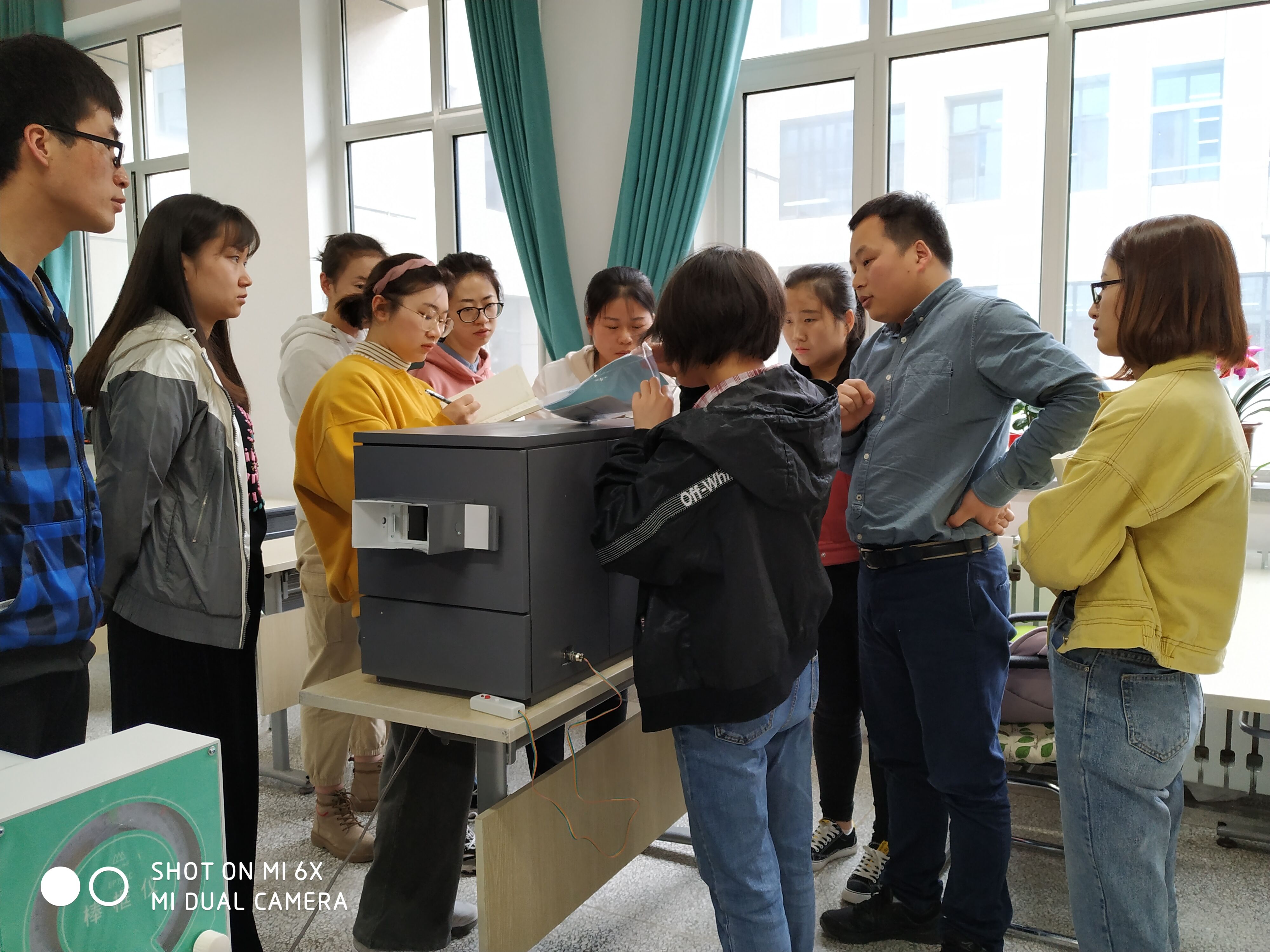 5月9日下午,华东师范大学常晓楠工程师来我院安装了新的基础实验室设备(EP-S2012),该设备包括综合实验仪、实验系统软件、实验工作台、两点阈测定仪、动觉后效仪、痛觉与痛阈仪、深度知觉仪、棒框仪、暗适应仪、系统终端和屏幕升降装置,附件有耳机、脚踏板、敲击板。工程师分别从理论和实际应用两个方面做了细致讲解,并组织师生进行现场学习和实践操作。