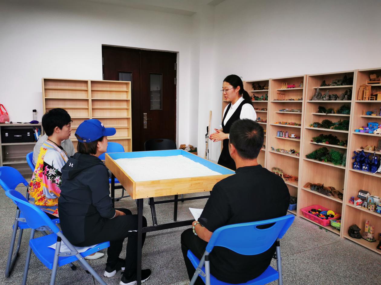 之后,由王老师带领大家进行沙盘体验,杨玲教授在一旁细心观察。此次沙盘体验相对于第一次来说,可以让成员更加体验到沙盘对于团体人际关系及自我探索是非常有帮助的。