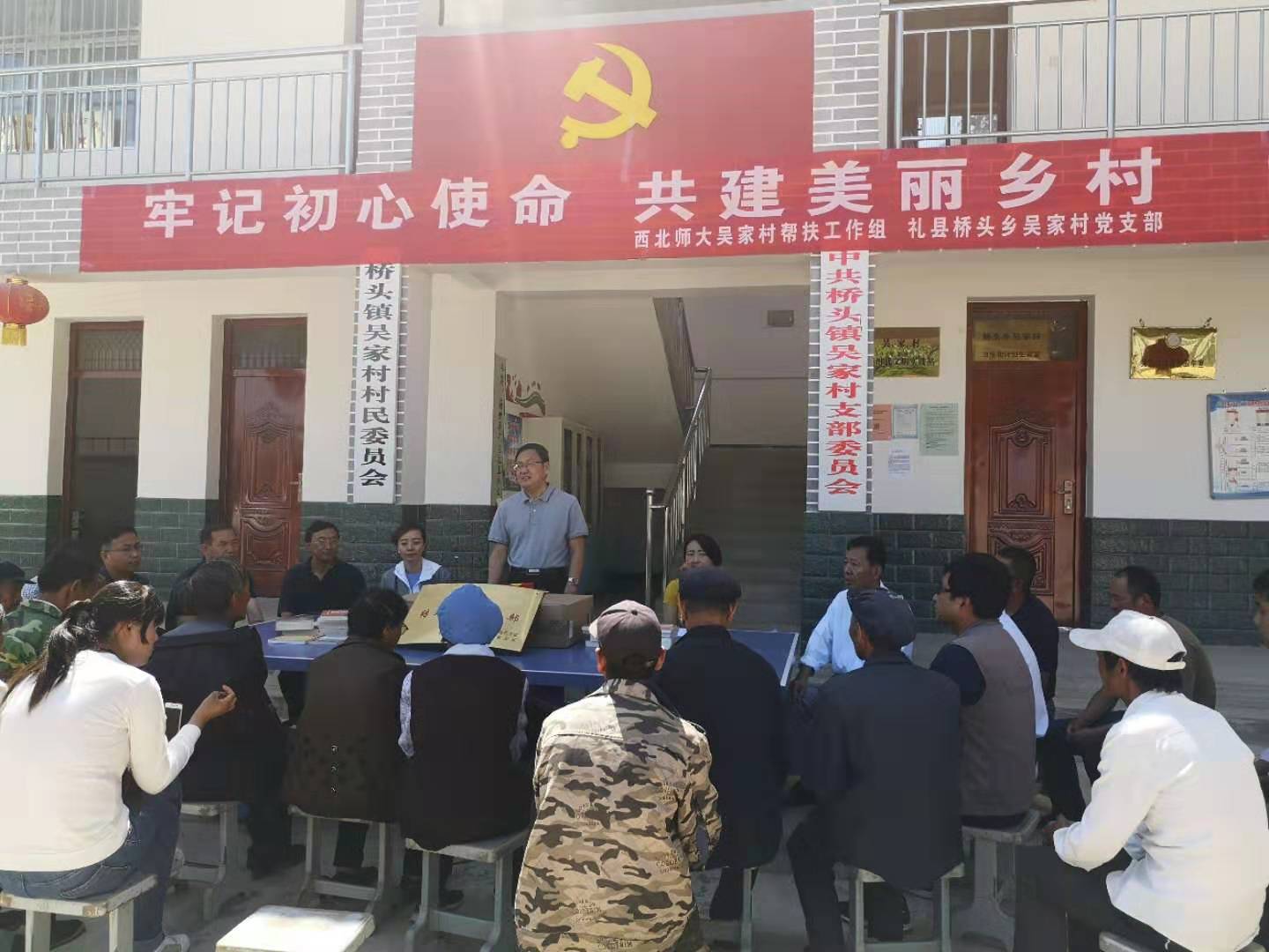 7月1日至2日,在中国共产党建党98周年之际,西北师大吴家村帮扶工作组一行13人赴礼县桥头镇吴家村开展“牢记初心使命,共建美丽乡村”主题党日活动。我院党委书记刘慧阳率队,院党委委员、教工党支部书记李建升等师生代表与吴家村全体党员、部分村民代表和我校驻村干部参加了活动。