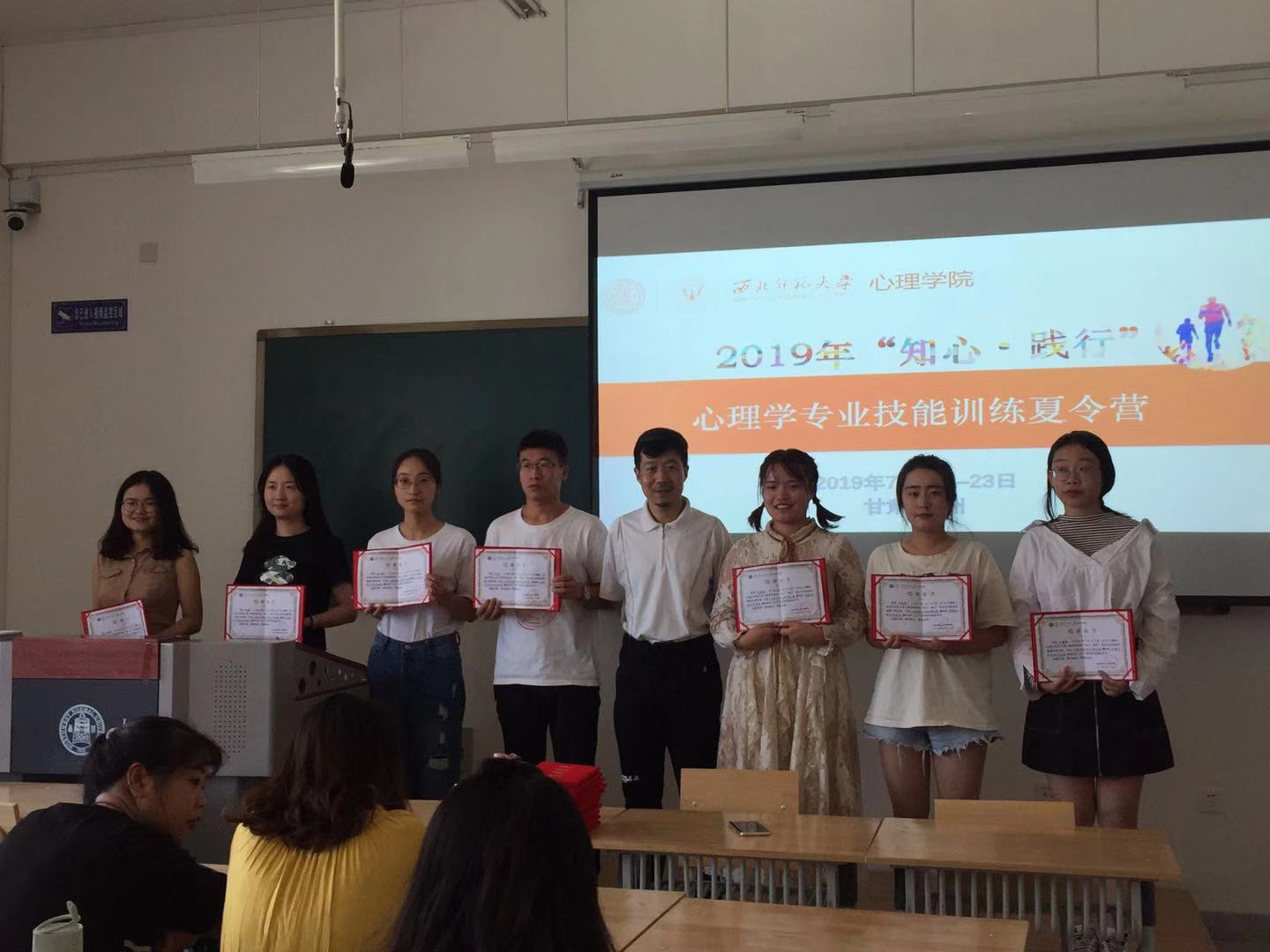 2019年7月23日,新利体育组织的2019年“知心·践行”学生专业技能训练夏令营活动顺利结束。新利体育结合训练模块,组织了结业典礼,新利体育赵国军老师、康廷虎老师、姜艳斐老师,以及带队老师程光参加结业典礼。在典礼上,参加训练的学院代表来自绍兴文理学院的陈丹丹同学、兰州城市学院的孙智同学、西北师范大学知行学院的李楠同学、新利体育的庞颖丹同学,结合自己参加夏令营活动的体验,分享了他们的收获和感想,他们一致认为,新利体育组织的这次夏令营活动,为同学们实践技能的训练和学习、为不同学校学生及师生之间提供了交流和相互学习的机会,并表达了对各模块授课老师的感激之情。新利体育赵国军老师在典礼致辞中,语重心长地勉励同学们明确自己的学习目标,用坚定的信念为自己的未来埋下一颗种子,并为之付出努力和奋斗。程光老师深有感慨的说,我们现在的每一份付出,都将在未来绽放美丽的花朵,都会为大家赢得回报。