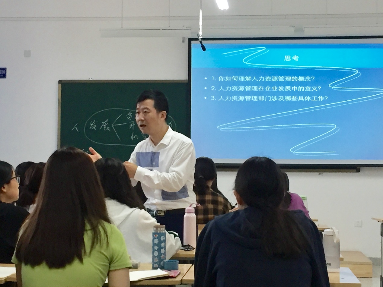 在课上,赵国军老师介绍了《人才测评》的课程性质,在教学中所使用的教材及参考书目、课程教学中推进“五个延伸”的具体做法,以及有关人力资源管理的理解等问题。该课程内容主要包括人事测评的不同体系、人事测评的主要方法两大部分内容。其既包括理论知识讲授,也包括知识应用与实践。在教学中,赵老师积极引导学生参与课堂,启发学生思考。课堂氛围活跃,同学们围绕思考问题,积极讨论、踊跃回答问题,较好地完成了开学第一课的教学任务。