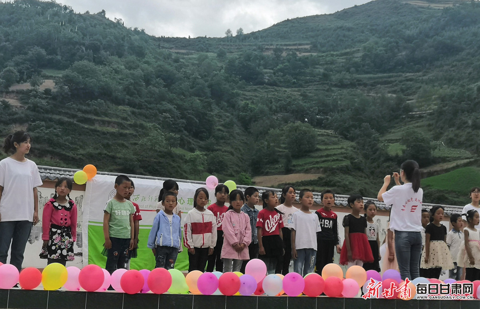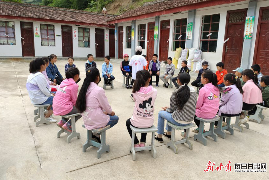 西北师范大学“甘肃省深度贫困地区留守儿童心理适应调查及干预研究”实践小分队正在对桥头镇吴家村的孩子们开展心理健康课程