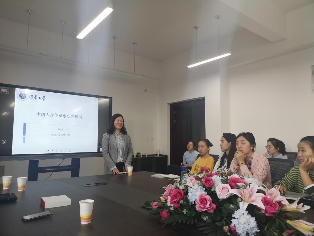 2019年9月22日上午,西南大学心理学部部长、博士生导师陈红在特教大楼401室为我院师生开展了主题为“中国人身体意象研究进展”的讲座,报告由新利体育周爱保院长主持,新利体育100余名师生参加了此次讲座。