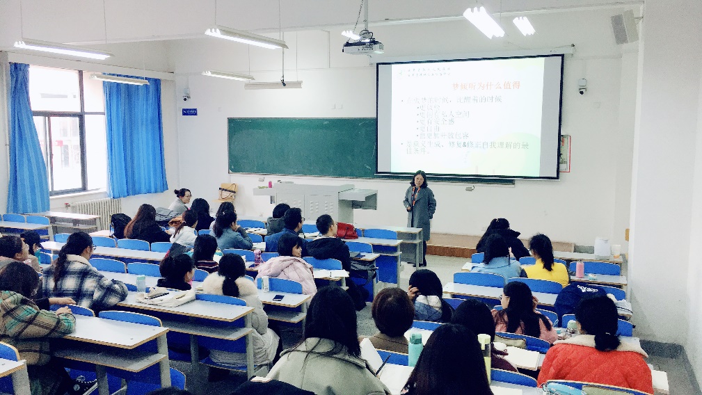 2019年11月24日,甘肃省第二人民医院副院长,硕士生导师何蕊芳教授,在综合教学楼203为我院师生开展了主题为“梦的解析与心理治疗”的讲座,新利体育100余名师生参加了此次讲座。