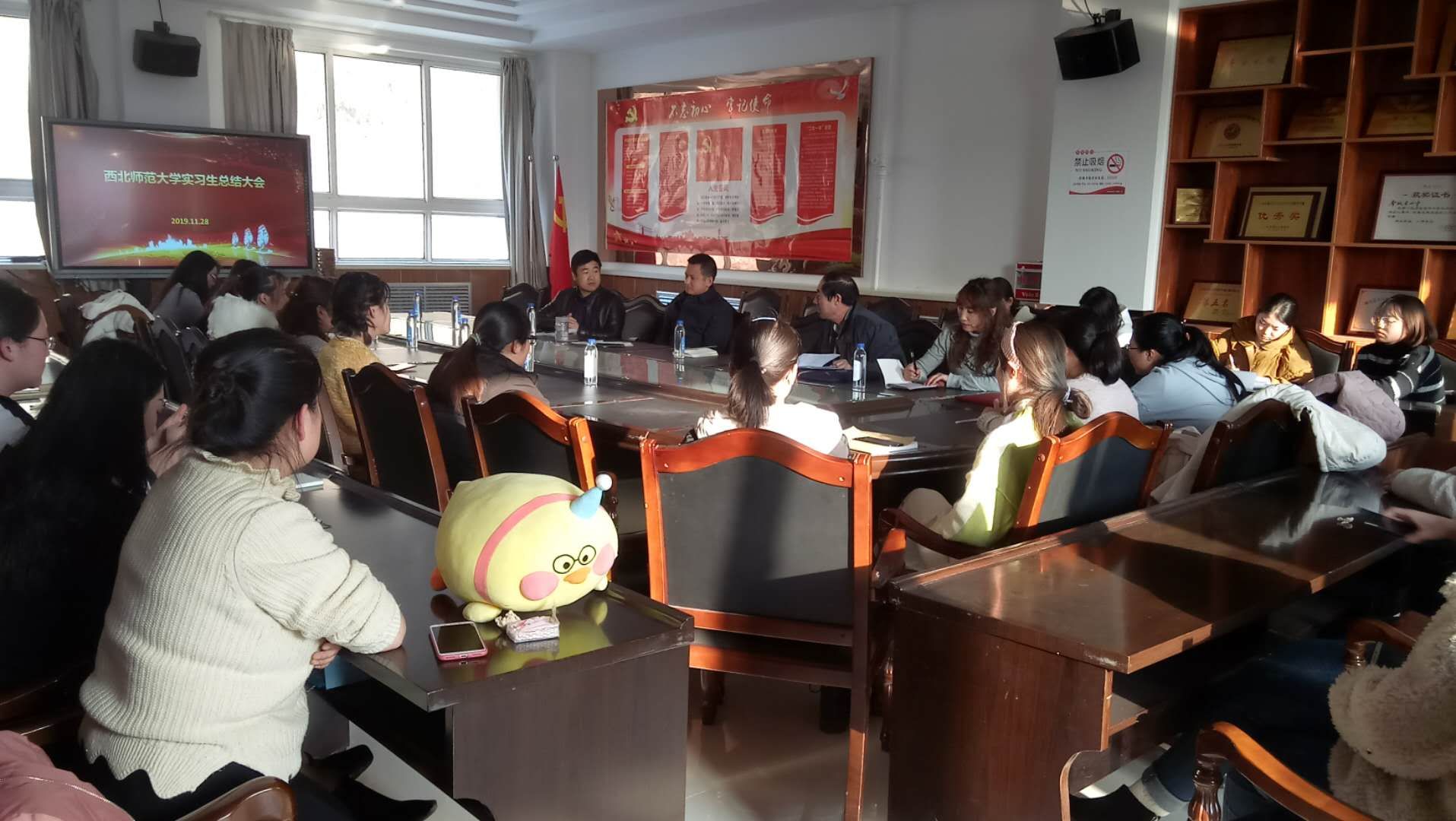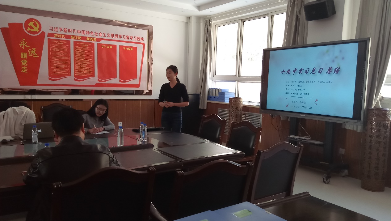 为了充分了解新利体育本科生专业实习的情况,探索师范类本科生专业实习的新模式,总结实习过程中遇到的困难、存在的问题,以及取得的成绩和经验。2019年11月28日下午,新利体育邀请西北师范大学教学督导马正学教授、陈祥恩教授,参加了新利体育在兰州市第十九中学教育集团实习生的实习汇报会,督导检查新利体育本科生的专业实习工作。汇报会在兰州市第十九中学教育集团河北校区举行,由在该校参加专业实习的新利体育本科同学李有旦卓玛主持,实习学校李效魁校长,实习指导教师郭洁秀老师、周婷婷老师,以及在该校参加实习的混合编队本科生,新利体育本科生、研究生等20余人参加了报告会。新利体育副院长康廷虎教授、实习指导教师刘显翠老师全程陪同检查和督导。