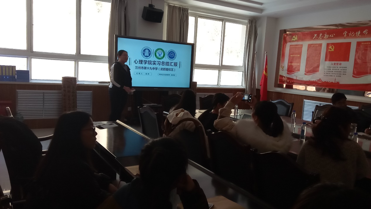 在报告会上,康廷虎副院长代表学院,表达对实习同学们的看望,并向提供支持、指导的学校领导、指导教师表示感谢。李效魁校长对西北师范大学教学督导,及新利体育的师生们表示欢迎,并介绍了学校在实习生安排、指导等方面开展的具体工作。学校指导教师郭洁秀老师代表学校指导教师团队对实习生在该校开展的实习工作和指导做了介绍。长期以来,第十九中学教育集团重视学生的心理健康教育工作,并建有较完备的心理咨询室,配备了专职的心理健康教师负责相关工作。实习指导教师刘显翠老师感谢第十九中学教育集团对新利体育实习工作的支持,同时,也对实习学校指导教师指导工作的认真与负责,充分发挥“传、帮、带”的作用表示感谢。