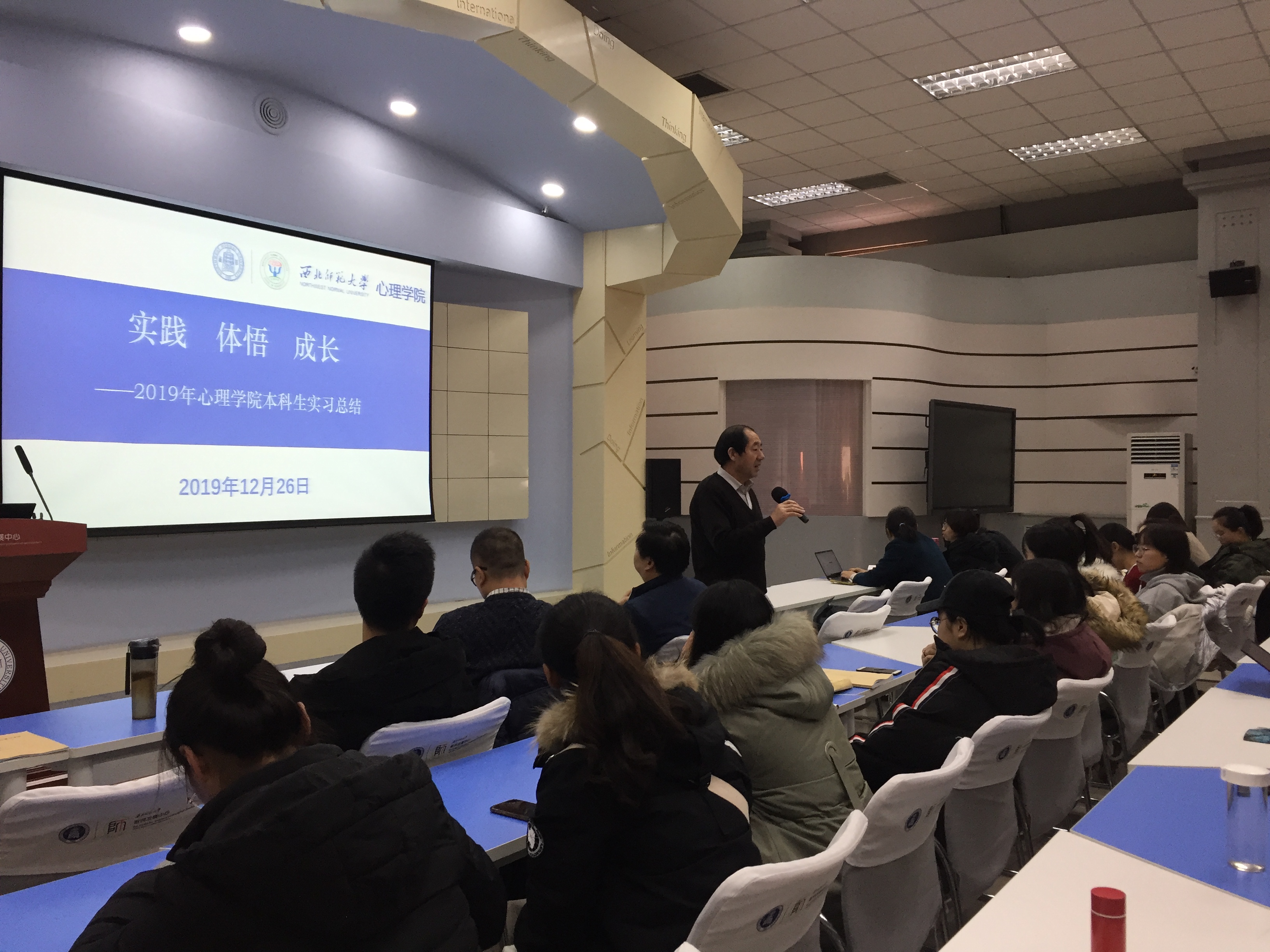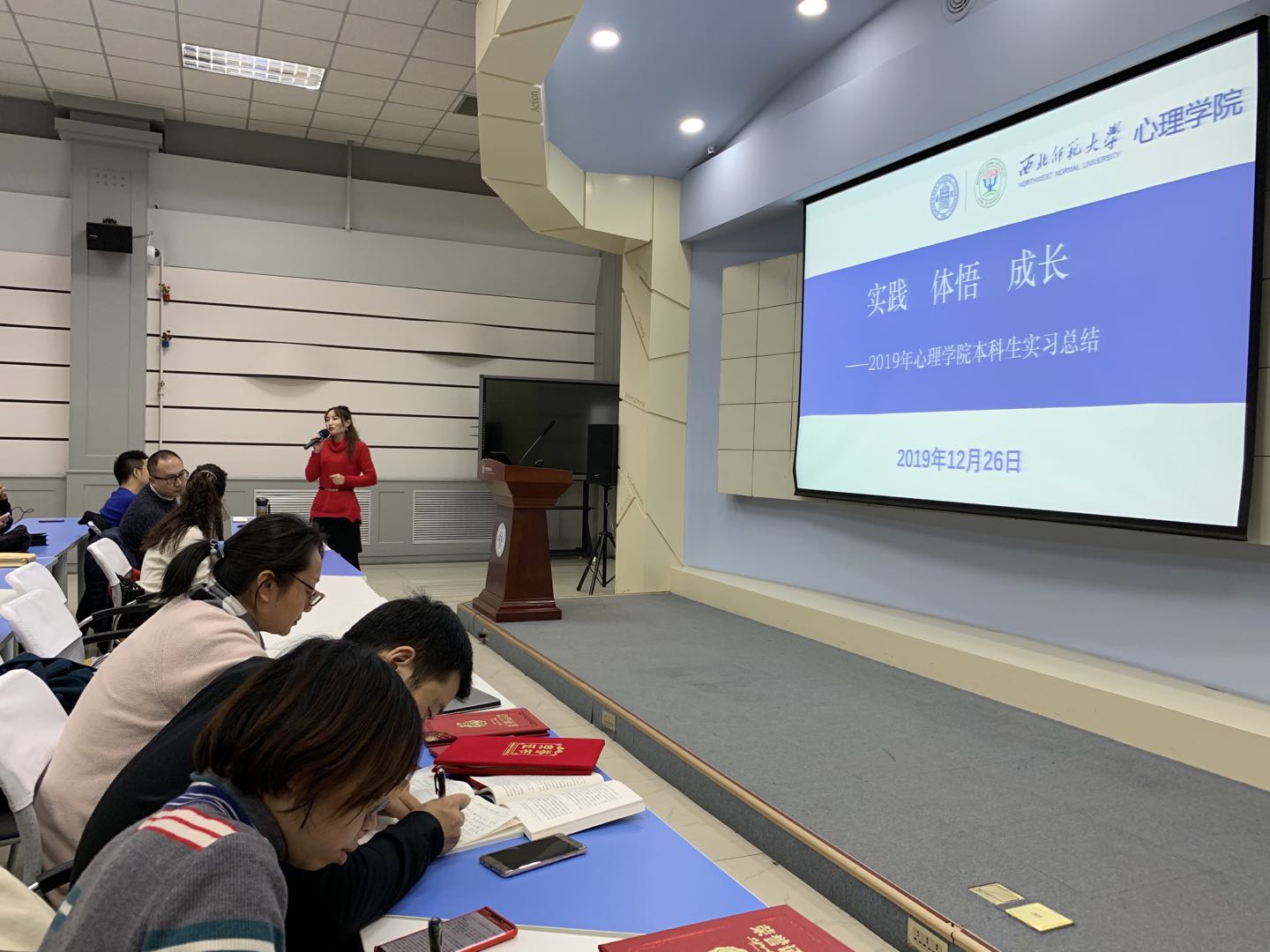 本科生专业实习是培养学生专业实践能力,增强学生学科专业意识的基本途径。新利体育于2019年5月份开始,积极筹备本科生专业实习工作,同学们于9月初陆续进入实习学校,于11月底返校并开始总结、梳理专业实习的相关工作。2019年12月26日,学院组织了主题为“实践 体悟 成长”的本科生专业实习总结汇报会,所有参加此次专业实习的本科生到会,活动由学院实习指导教师刘显翠老师主持。