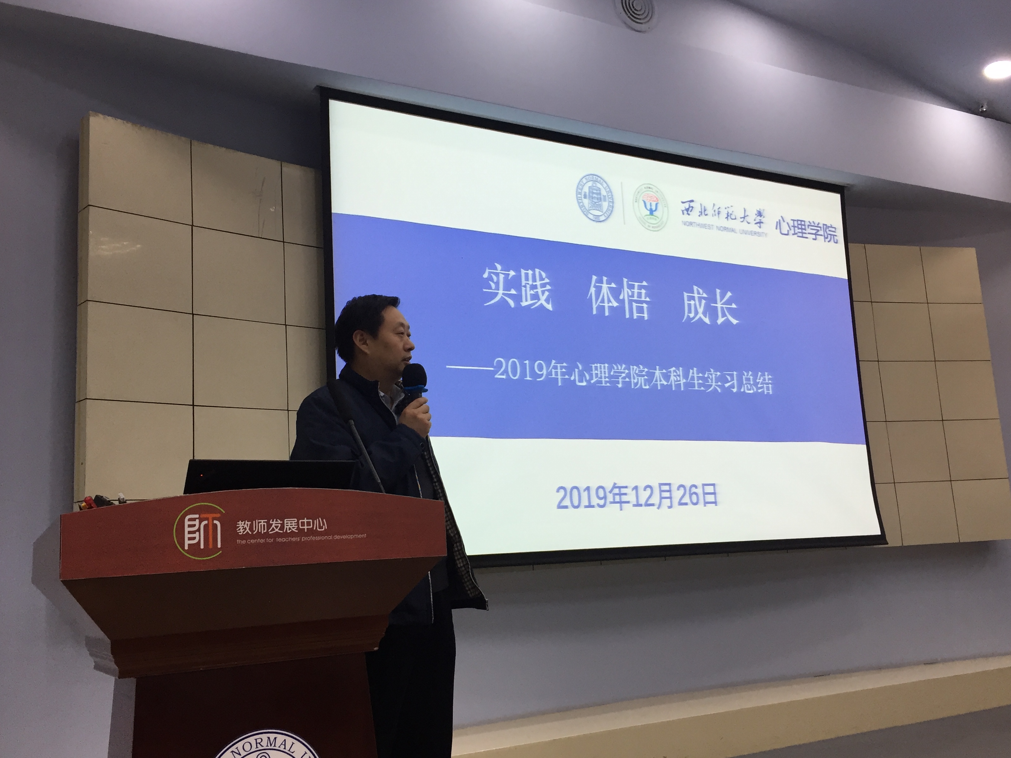 在汇报会上,康廷虎副院长汇报了新利体育组织和指导本科生专业实习、实习基地建设等的基本情况;参加实习的各小组代表分别从心理健康教育教学实践、班主任管理、学校事务参与等方面汇报了同学们在实习过程中开展的各项工作,以及在实习过程中的收获和成长,感谢学院的精心组织,以及实习学校指导教师、领导的关怀和教导;来自兰州市第五十一中学的张翔老师代表实习学校指导教师总结汇报了同学们在实习学校的实习、生活情况,分享了对本科生专业实习指导的模式探索和指导经验。会上还为付出辛勤劳动的指导教师颁发了优秀指导教师的荣誉证书,为在实习过程中表现优秀的实习同学、获得本科生实习优秀案例展评的同学颁发了荣誉证书。