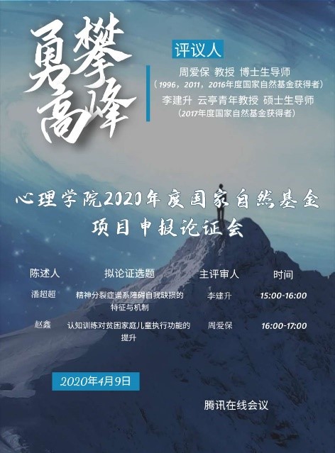 2020年4月9日下午,我院举行2020年度国家自然科学基金申报线上论证会。此次论证会邀请了周爱保教授和李建升教授作为主要评议人,对我院拟申报2020年度国家自然基金项目的申报书进行指导。论证会上,我院赵鑫老师和周爱保老师就此次申报项目的研究意义、研究内容、技术路线以及可行性等方面逐一进行了汇报,主要评议人及参会的老师对项目申报书中存在的问题进行了分析,并提出了修改意见。线上申报会由我院科研秘书李世峰博士主持,我院12位教师参加了此次线上论证会。