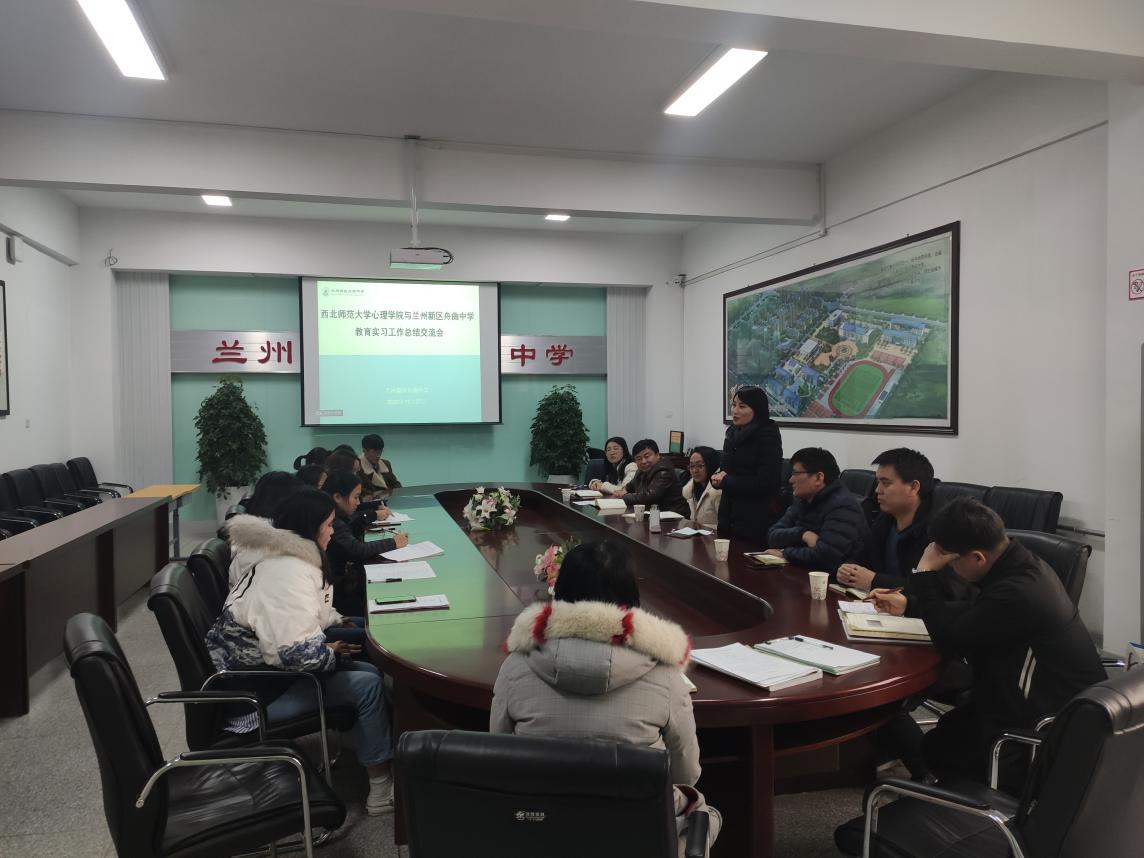 2020年秋季学期,新利体育安排金云馨、姚有娟、周嘉薪、李博悦、朱昊等10名同学在兰州新区舟曲中学参加教育实习。实习工作得到了实习学校的积极支持,安排了杨悦、李帆等5位指导教师。同学们在学校里完成了课堂教学、班级管理、基础教育调研,以及心理咨询室的相关工作。2020年11月27日上午,新利体育应用心理学系主任刘显翠副教授、实习指导教师雍琳副教授带队,赴兰州新区舟曲中学看望实习学生,并参加了学校组织的教育实习汇报会。新区舟曲中学的教导主任蔺晨阳老师及实习指导教师参加了总结汇报会。