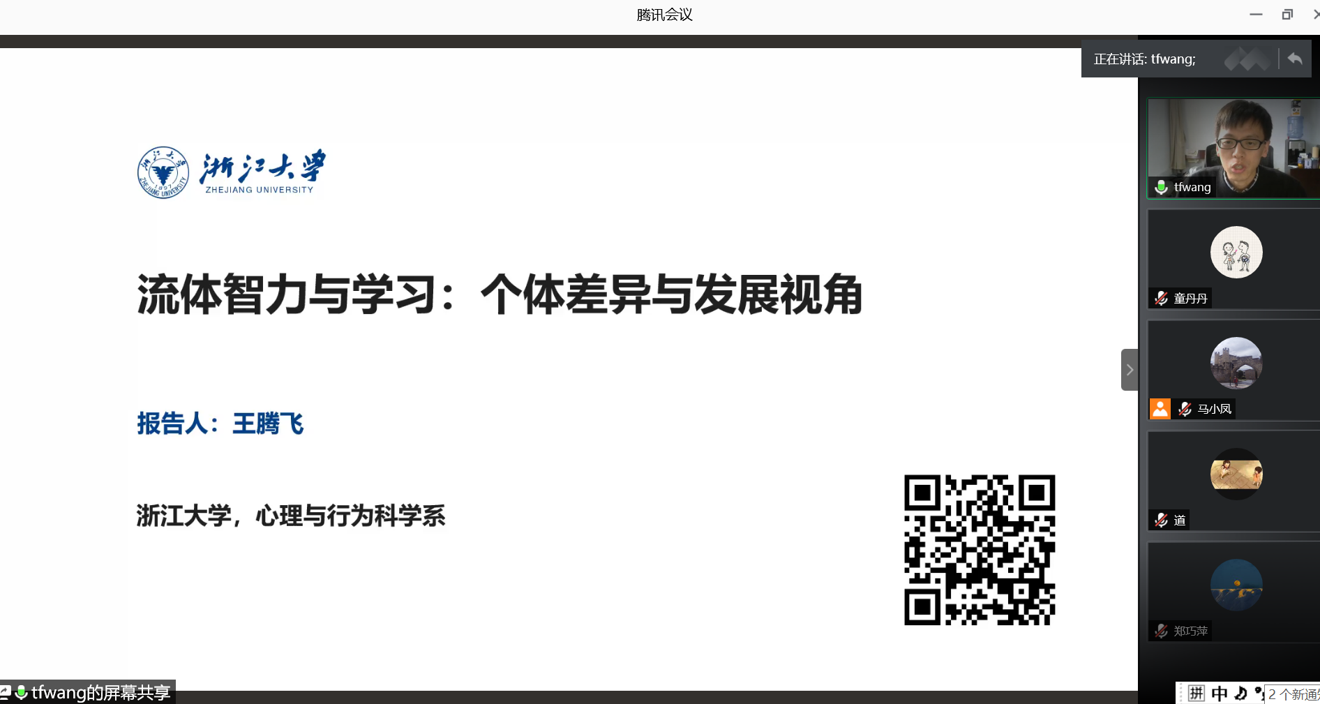 2020年12月17日下午,应新利体育邀请,浙江大学王腾飞副教授为我院师生作了题为《流体智力和学习:个体差异与发展视角》的学术报告。报告由新利体育副院长马小凤教授主持,新利体育百余名师生在线收听了报告。