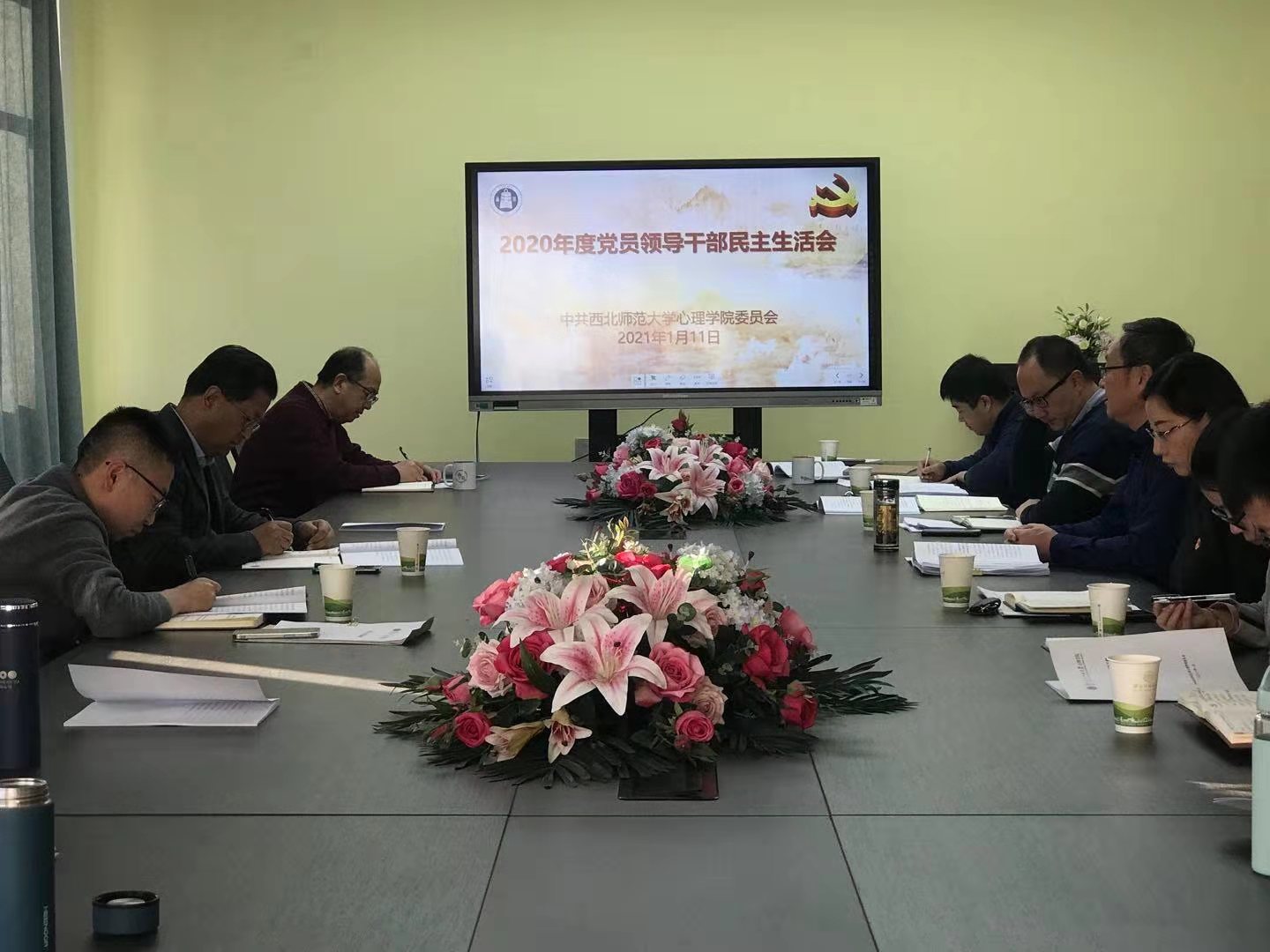 2021年1月11日下午,心理学院党委在特教楼401会议室召开2020年度副处级以上党员领导干部民主生活会。学校党委第四督导组组长、党委常委、副校长董晨钟,督导组成员、纪委干部赵小培同志列席指导。学院领导班子成员、党委委员、党支部书记、系主任和部分教师代表参加会议。党委书记刘慧阳主持会议。