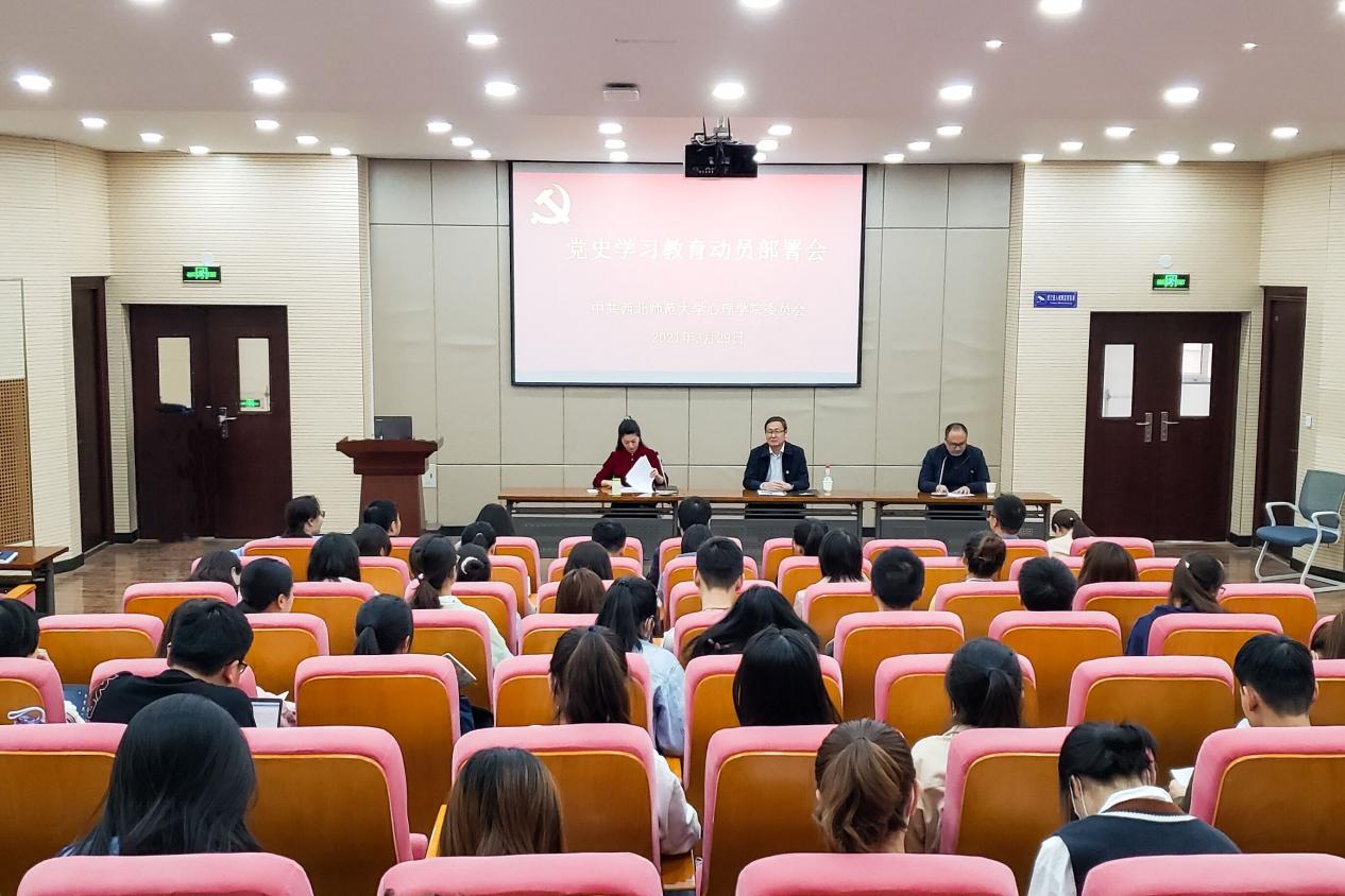 3月29日下午,新利体育党委在新校区特教楼159报告厅召开党史学习教育动员部署大会。学院党员领导干部、党委委员和全体师生党员参加会议。学院党委书记刘慧阳作动员讲话,党委副书记蒋玲作工作安排,院长赵鑫主持会议。