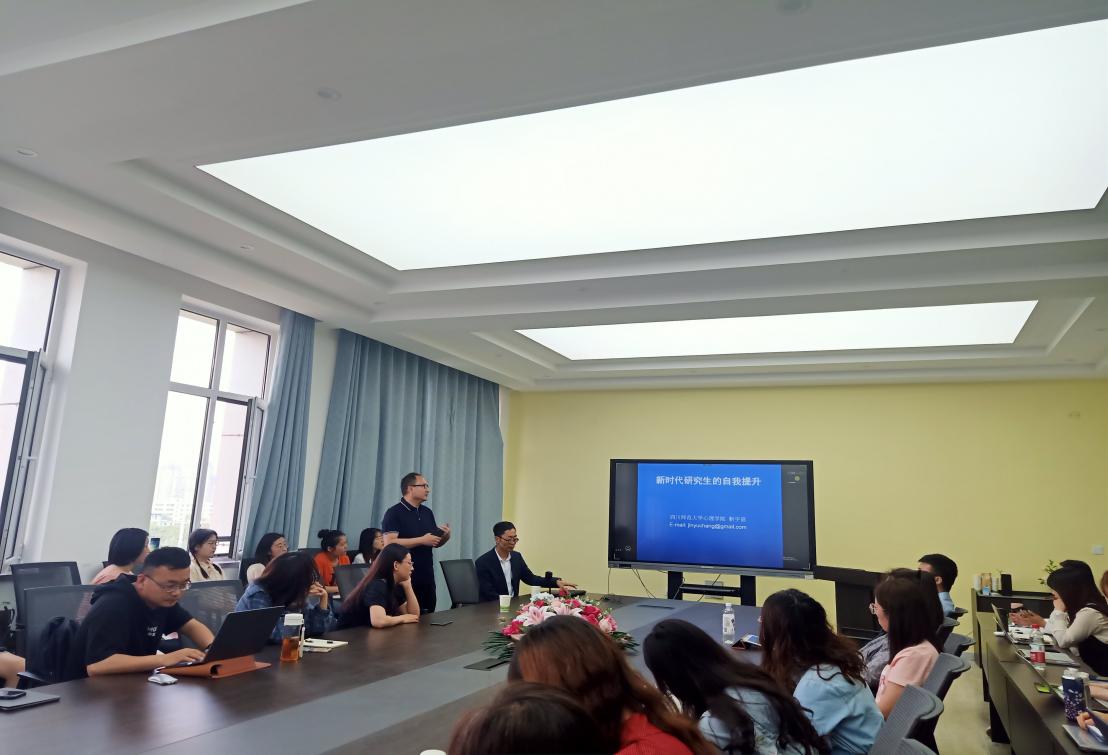 2021年5月29日,应学院邀请,四川师范大学新利体育院长,博士研究生导师靳宇倡教授在特教楼401为我院师生开展了“新时代研究生的自我提升”为主题的讲座,此次讲座由新利体育院长赵鑫教授主持,新利体育100余名师生参加。