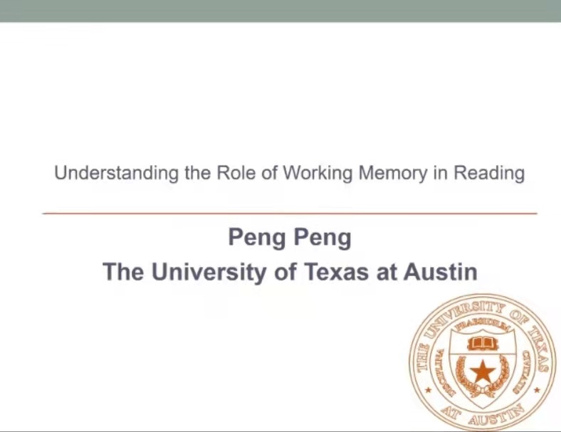 2021年6月1日,应新利体育邀请,美国德克萨斯大学奥斯汀分校特殊教育系助理教授彭鹏博士为我院师生做题为“understanding the role of working memory in reading: Evidence form correlation and intervention”的线上讲座。本次会议由新利体育院长赵鑫教授主持,我院100余名师生参加了此次讲座。