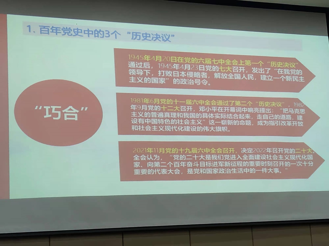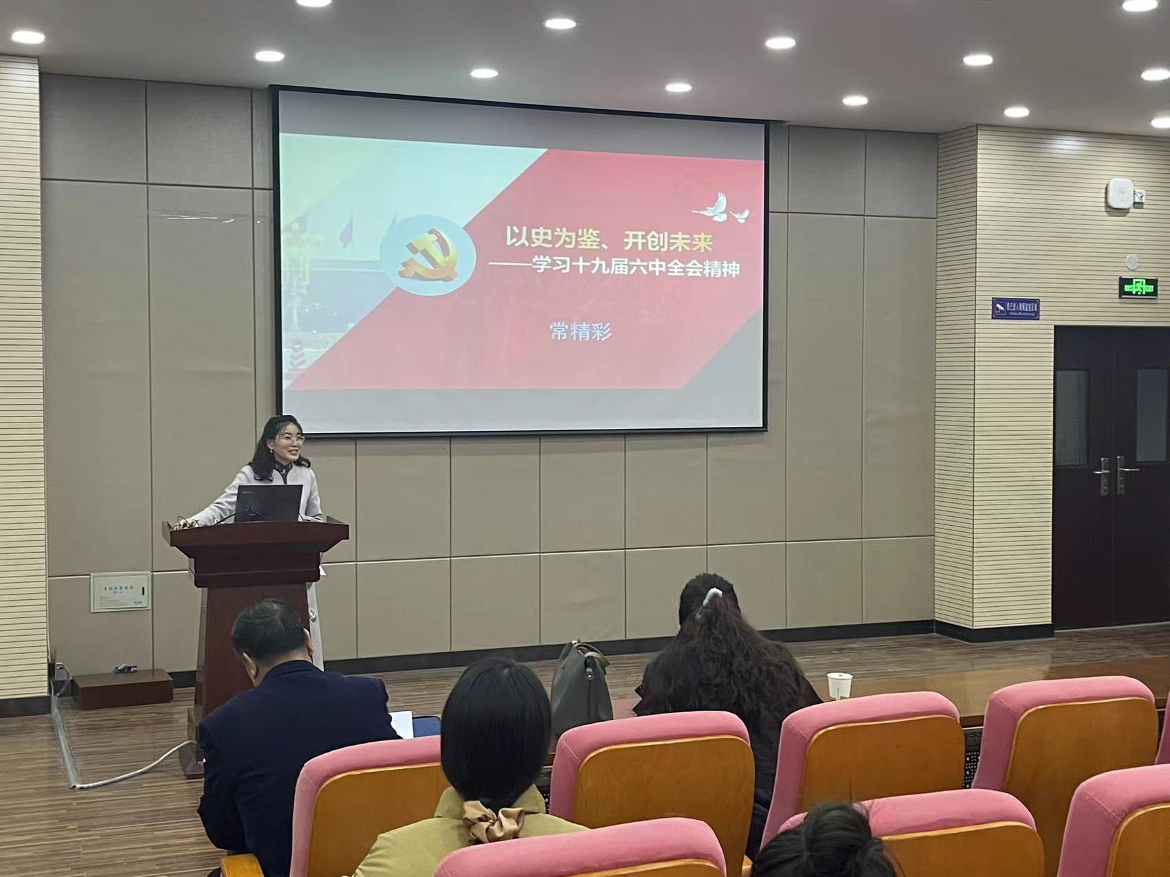 常精彩副教授从“党的百年奋斗历史意义”“十个坚持,四个必须,两个确立,十个明确”等几个方面,对党的十九届六中全会精神作了宣讲。他要求全院师生要把思想和行动统一到全会精神上来,认识新形势、把握新阶段、树立新理念、服务新格局,聚焦高质量发展主题,坚持立德树人根本任务,为建设教育强国,实现中华民族伟大复兴贡献力量。