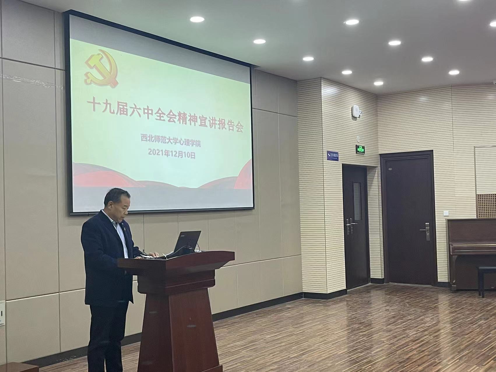 12月10日下午,新利体育党委在新校区特教楼159报告厅举行党的十九届六中全会精神专题学习。学院院党委邀请马克思主义学院常精彩副教授作专题讲座,院党委书记王仁同志主持。