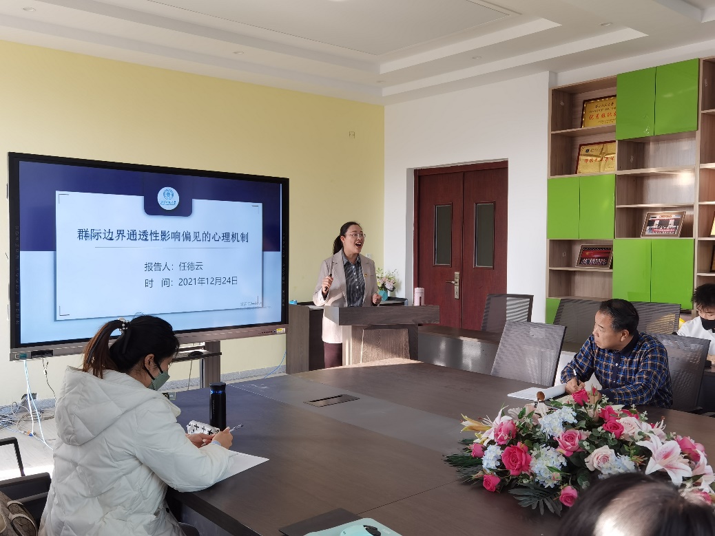 2021年12月24日,新利体育举办了第五场“木铎心声”新利体育青年教师系列学术讲座,任德云博士为我院师生作题为《群际边界通透性影响偏见的心理机制》的学术报告。报告由新利体育童丹丹副教授主持,新利体育100余名师生参加了本次报告。