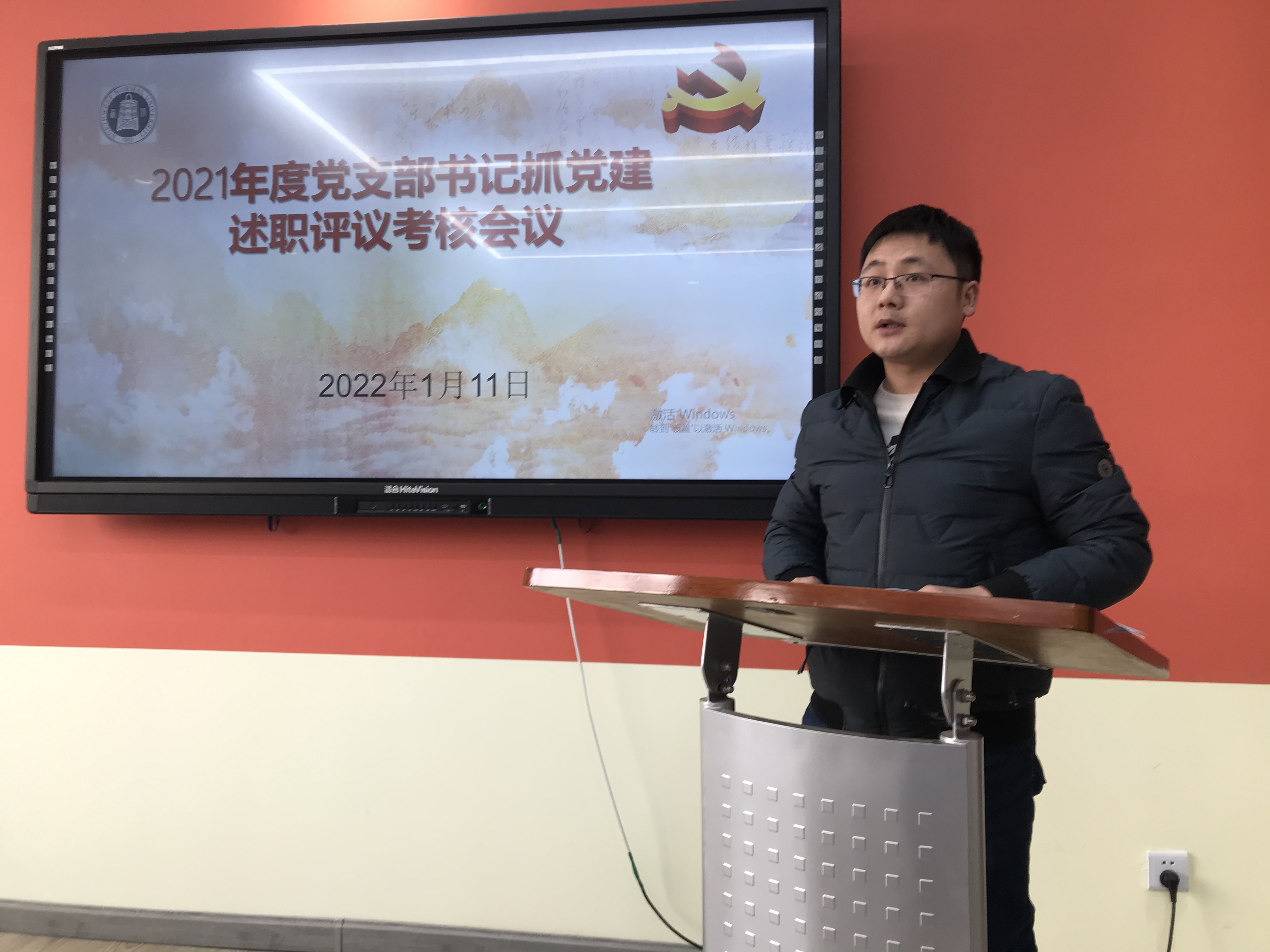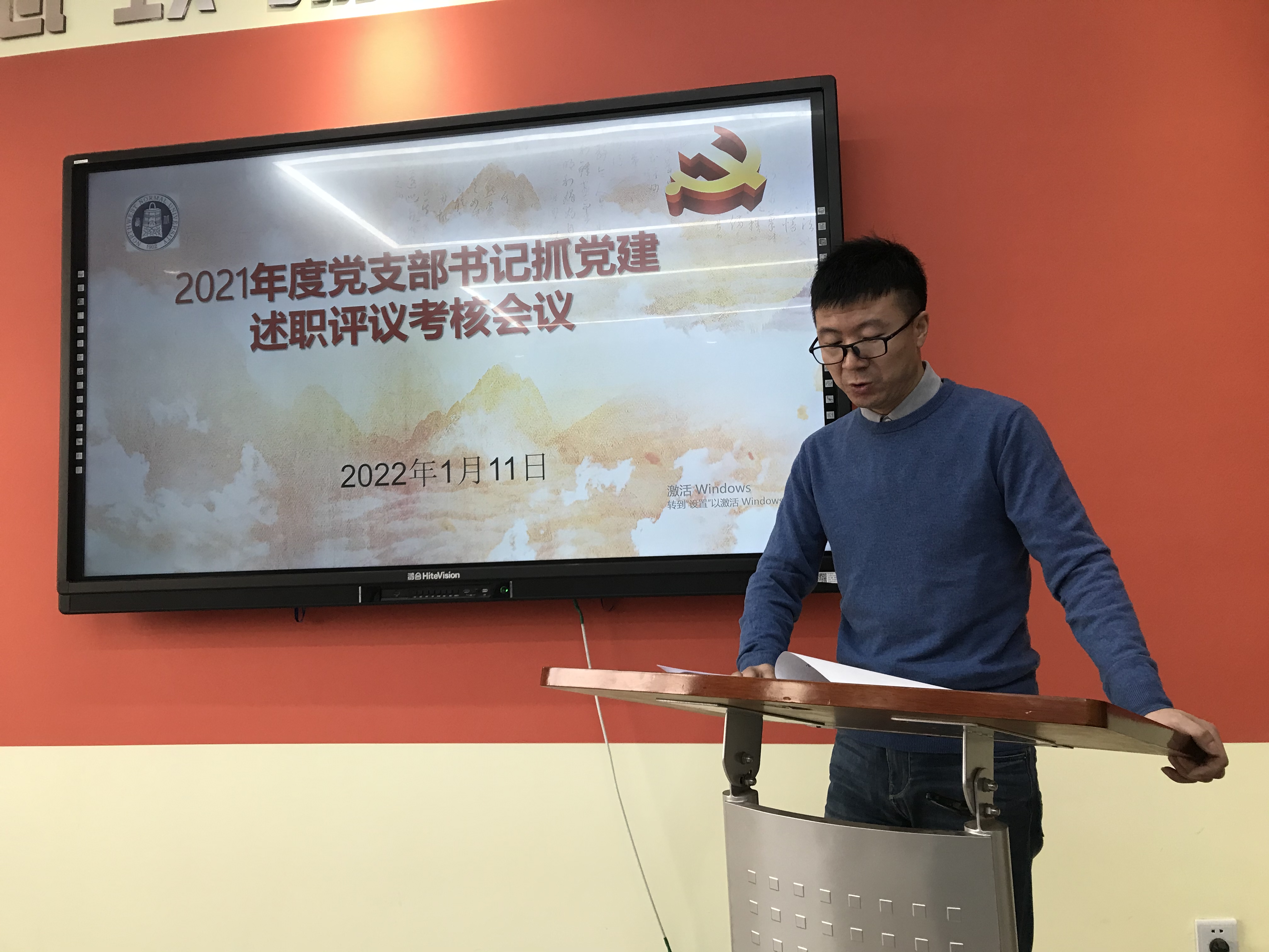 党委书记王仁分别对各支部书记的述职进行了点评,充分肯定了各党支部在开展党史学习教育、发展党员、党员教育管理、党建双创等工作中取得的成绩,同时就各支部工作中存在的问题和不足,诸如理论学习与学术研究结合不紧、党员教育活动形式单一等提出了改进的要求和建议。