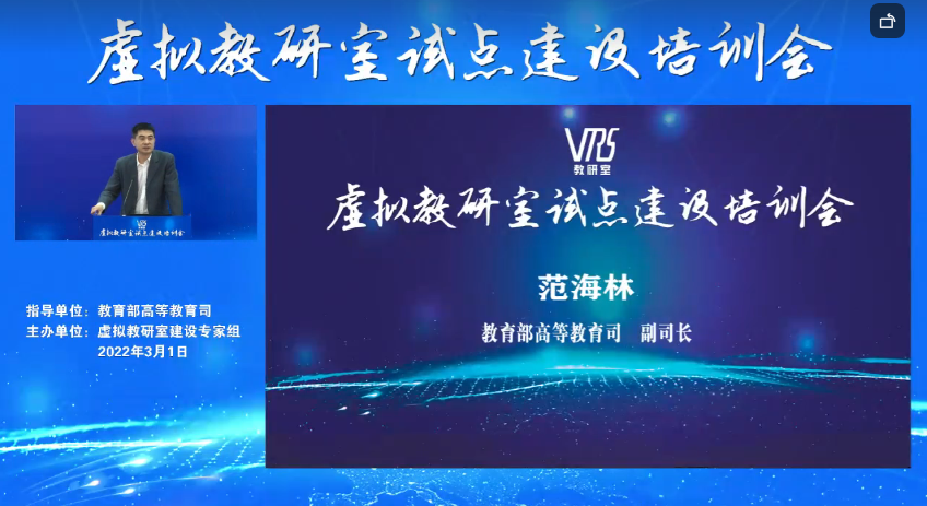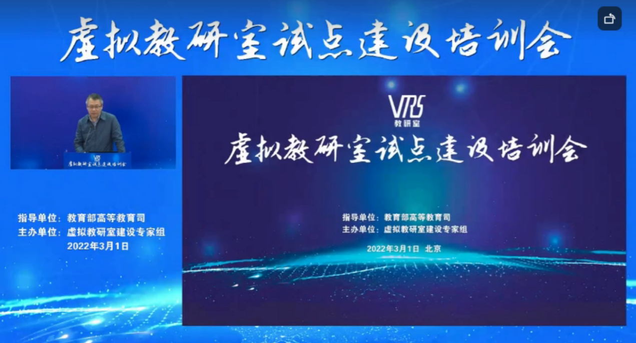 2022年3月1日,教育部高等教育司组织召开虚拟教研室试点建设工作培训会。会议以线上线下相结合的方式举行。现场会议设在北方工业大学,教育部高等教育司有关负责人、虚拟教研室建设试点负责人及代表、虚拟教研室建设专家组成员等参加会议。