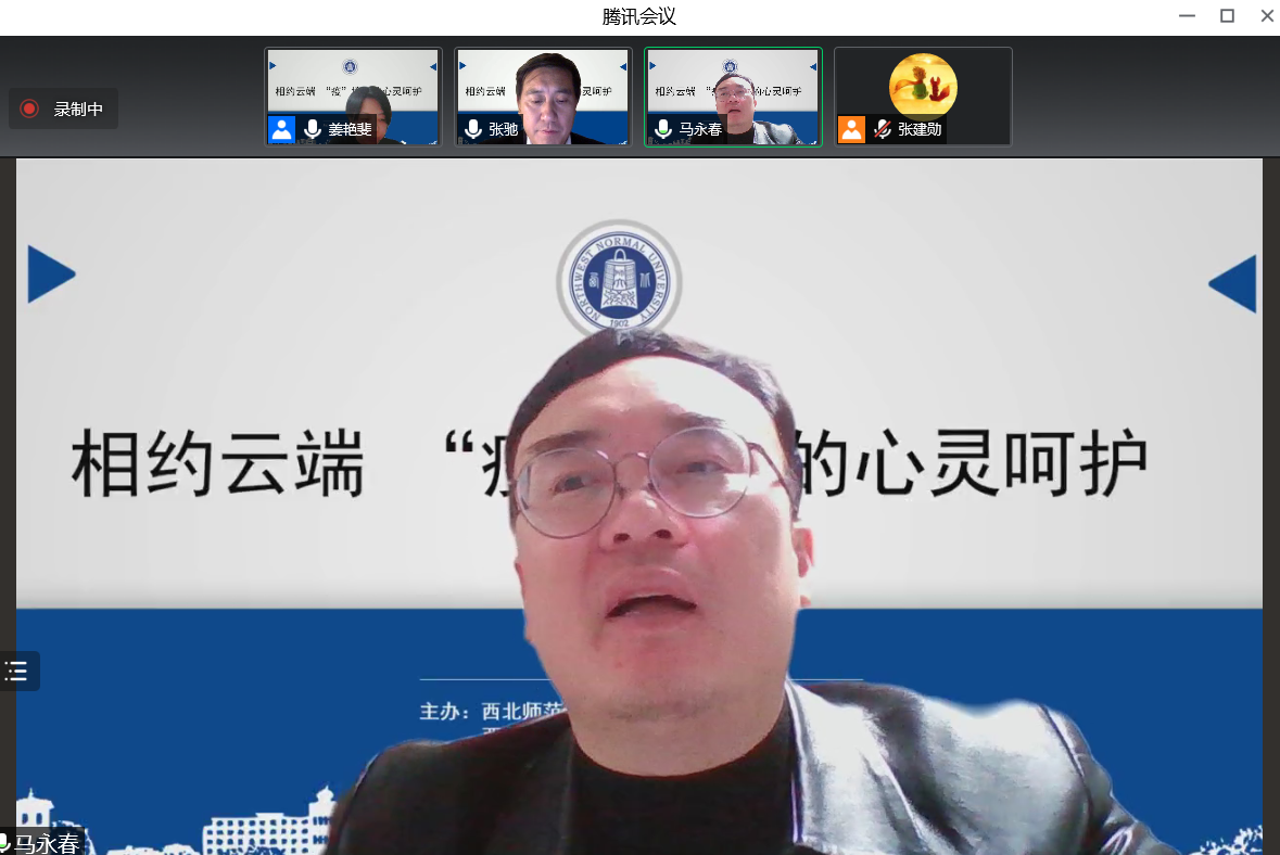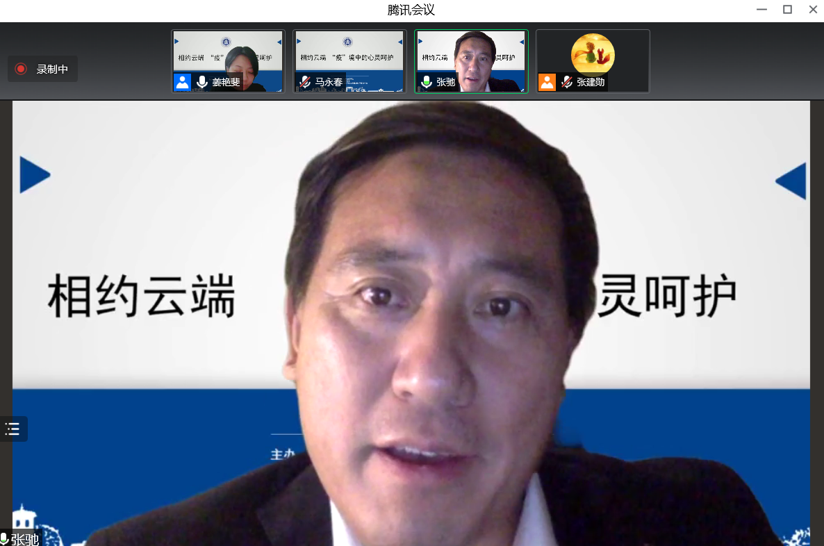 张主任指出疫情防控期间我们要学会接纳自己目前的状态,理解自己在面对不正常情境中的正常反应。他呼吁大家在特殊时期面对各种问题时要勇于求助,积极寻求社会支持,做好疫情防控期间的情绪管理与压力应对。最后张主任以一首饱含情感的《我和我的祖国》借歌抒情,祝愿大家早日度过疫情难关。他也希望同学们可以深刻意识到,国家、学校、老师们永远是当前我们应对疫情最有力的依靠。