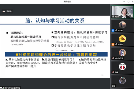 2022年4月29日,应新利体育邀请,北京师范大学陶沙教授通过线上形式为我院师生作题为《汉语和英语阅读学习与儿童脑认知发育:追踪观察与随机干预研究的发现与思考》的学术报告。本次报告由新利体育赵鑫教授主持,新利体育110余名师生参加了报告。