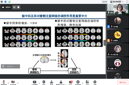 陶沙教授的讲座以汉语和英语阅读学习和儿童脑认知发育为主题展开。陶沙教授首先介绍了中文和英文阅读涉及的脑机制,以及阅读对大脑结构和功能发育的促进作用。然后,陶沙教授跟大家分享了其研究团队关于学龄期阅读学习与大脑的结构功能、认知之间关系的前瞻性追踪研究。该研究系统探讨了注意功能对阅读学习表现的预测及阅读学习对注意功能的促进作用、注意功能与阅读学习之间的双向关系、注意功能与阅读学习的双向建构过程中脑结构与功能网络发育的中介作用等问题。最后,陶沙教授还跟大家分享了其研究团队有关第二语言阅读学习如何受到母语的影响、并重塑脑活动模式的研究以及主要发现。通过陶沙教授两小时的精彩讲解,同学们对阅读学习、大脑的结构功能、认知之间的关系有了更加深刻的理解。