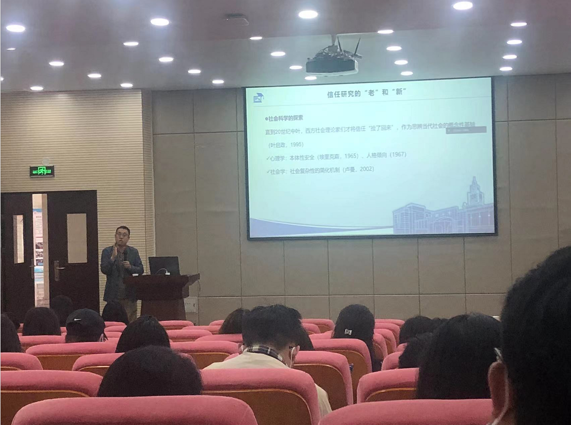 高学德教授本次讲座分别从“信任”、“关系信任”、“信任流变”和“信任重塑”四个方面展开。首先高学德教授引用卢曼和霍布斯的名言强调了信任在我们生活中的重要作用。其次,高学德教授结合传统中国文化和西方社会两个方面深入浅出的解释了信任在社会科学研究中的重要作用。最后,高学德教授向大家分享了其研究团队在社会流动的状况下中国传统社会的信任模式。这些研究主要关注了信任的运作方式、关系信任与求职和现代性与信任危机的勾连等问题。高学德教授精彩的讲解不但激发了同学们的学术热情,也增加了同学们对信任的理解。
