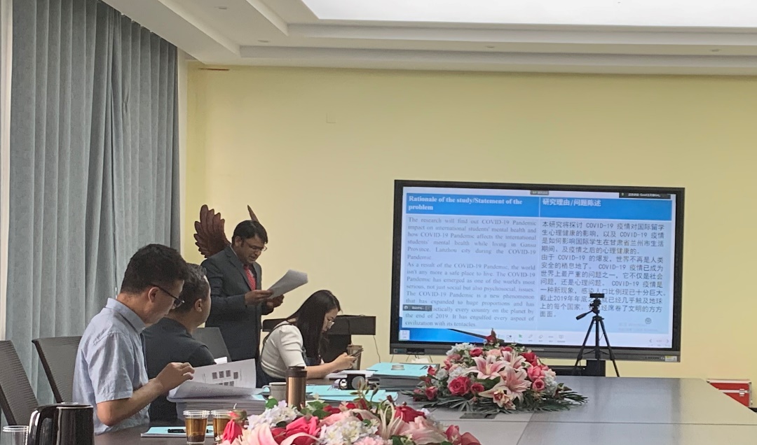 答辩环节,答辩主席邱江教授首先对答辩要求做简单陈述。而后,答辩学生对论文内容进行报告。答辩专家围绕毕业论文的意义和创新点、研究方法、论文写作等方面进行提问。最后,答辩学生基于答辩专家的问题做解释与回复。