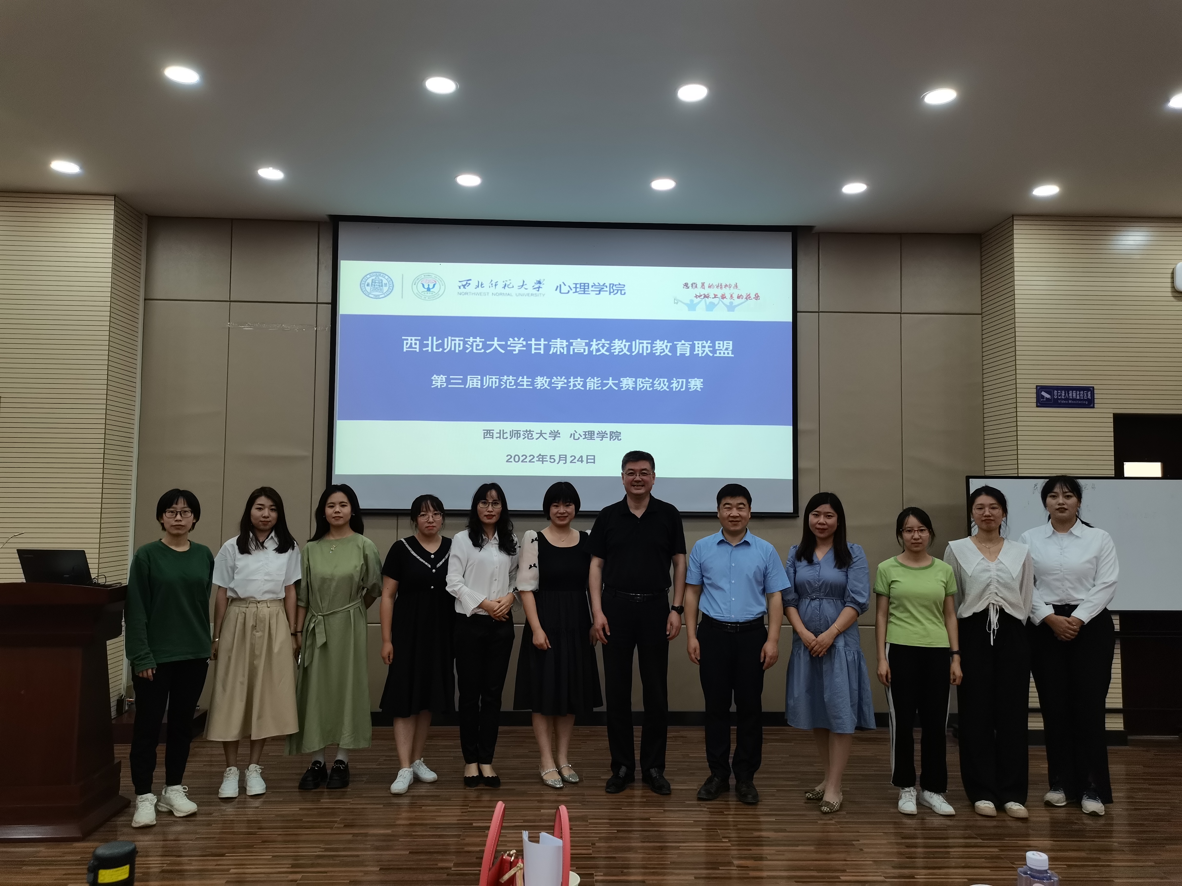 2022年5月24日下午,新利体育在特教楼159报告厅组织甘肃省高校教师教育联盟第三届师范生教学技能大赛院级比赛。本次比赛邀请了兰州市第三中学刘照涌校长、西北师范大学第二附属中学心理健康教育专职教师秦力老师、兰州外国语学校心理健康教育专职教师张文靓老师担任评委。应用心理系主任刘显翠老师主持活动,康廷虎副院长、学院参赛选手,以及观摩同学参加了活动。