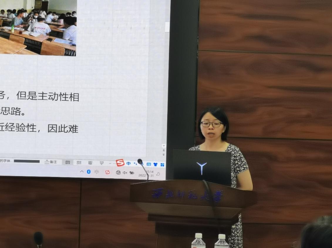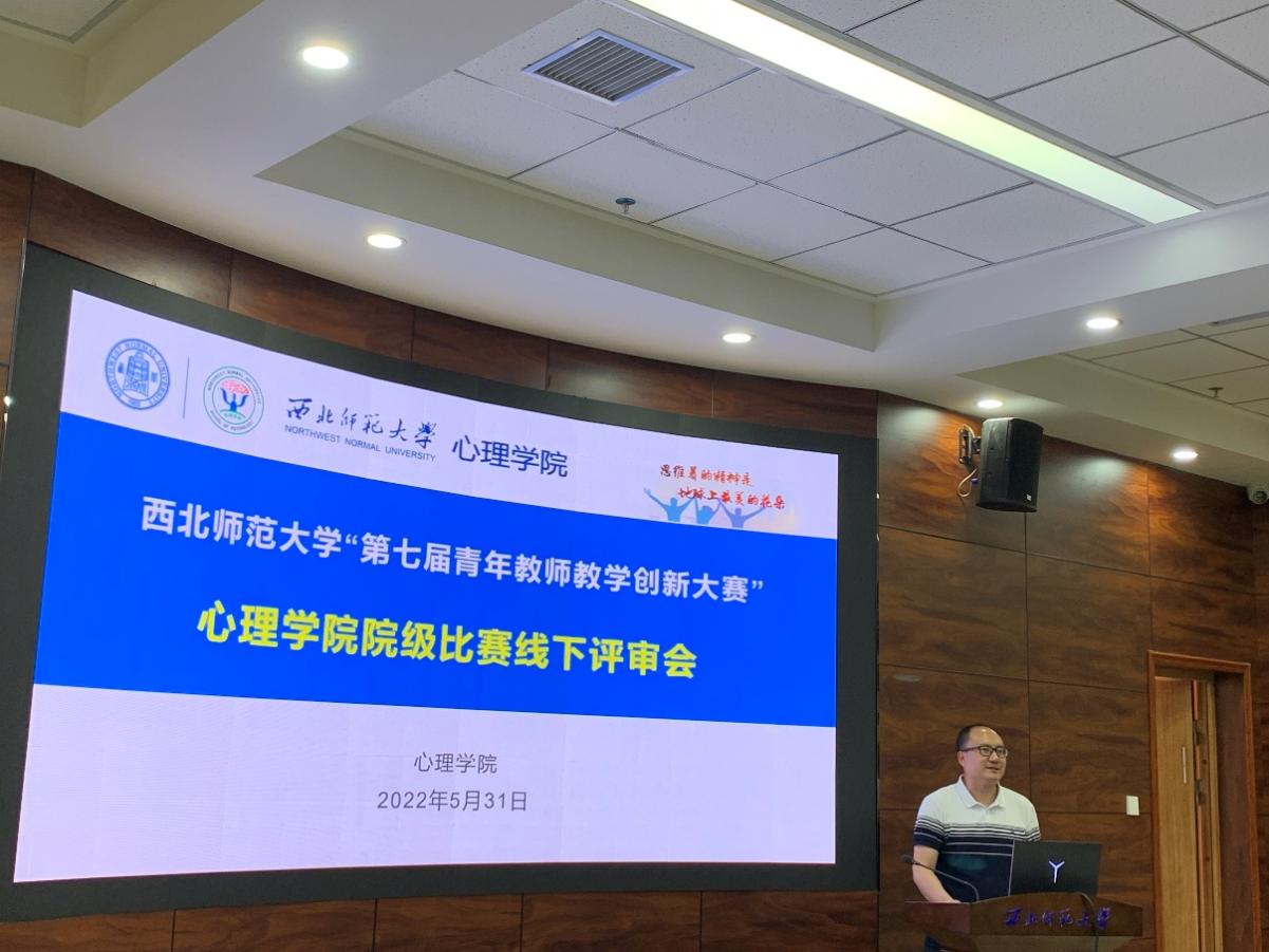 在前期线上听评课及教学文档评价的基础上,学院推荐张祥字、张荣华、尹玉龙、任德云、曹华、张建勋6位优秀选手参加线下教学展示评比。学院于2022年5月31日,组织优秀参赛选手进行线下教学展示。评审委员会由学校教学督导马正学教授、周同藩教授,新利体育杨玲教授、康廷虎教授、雍琳副教授组成。学院周爱保教授、夏瑞雪教授、杨阳副教授,以及张彦驰、刘晓婷等老师参加,学院部分本科生和心理健康教育硕士研究生也参加了教学观摩活动。