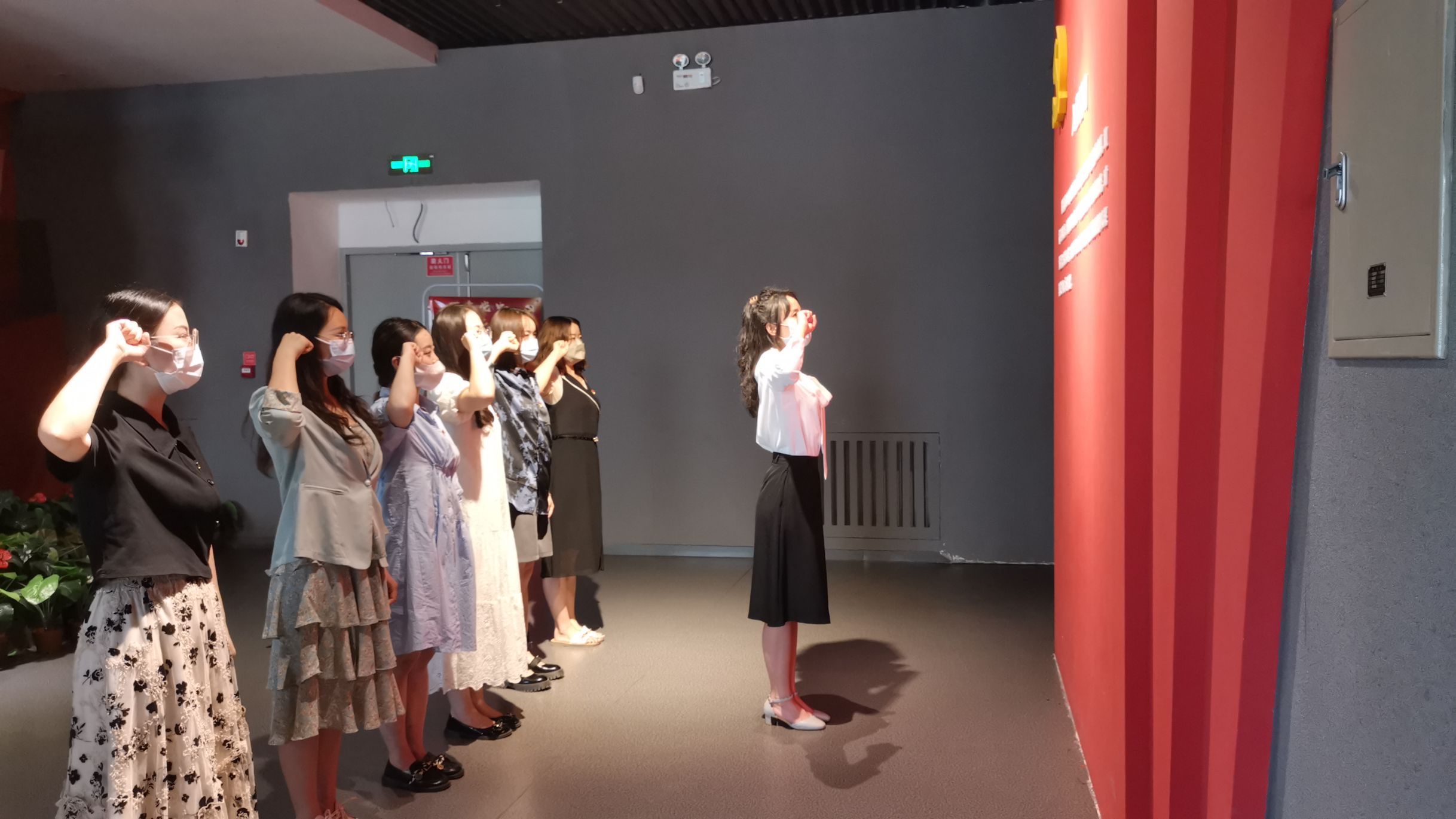 参观完毕后,在支部书记刘老师的带领下,支部预备党员进行了入党宣誓活动。 通过本次党建活动,师生党员对红色甘肃展厅有了更深入的了解,接受了一场红色革命教育,大家纷纷表示,要从自我做起,从现在做起,坚定理想信念,弘扬革命传统,铭记英烈遗志,为党的事业奋斗终生。