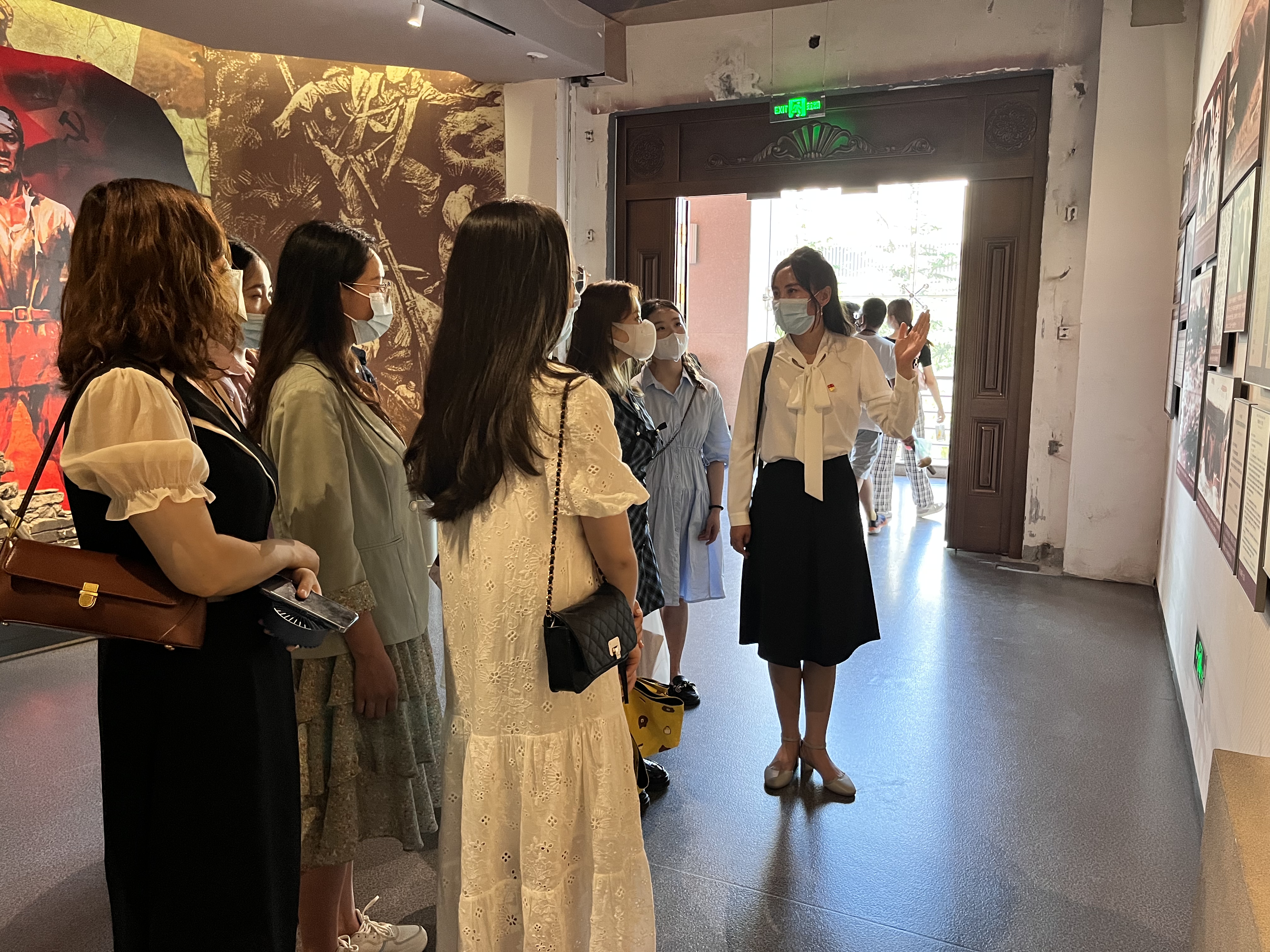为庆祝建党101周年,迎接党的二十大胜利召开,学院各党支部在七一前夕组织预备党员前往省博物馆“红色甘肃”展厅进行现场教学。2022年7月7日,研究生第二党支部在支部书记刘显翠老师的带领下,组织预备党员10余人赴甘肃省博物馆参观红色甘肃展厅并学习相关知识,参观学习活动采用由预备党员讲解红色展厅相关故事的方式进行。