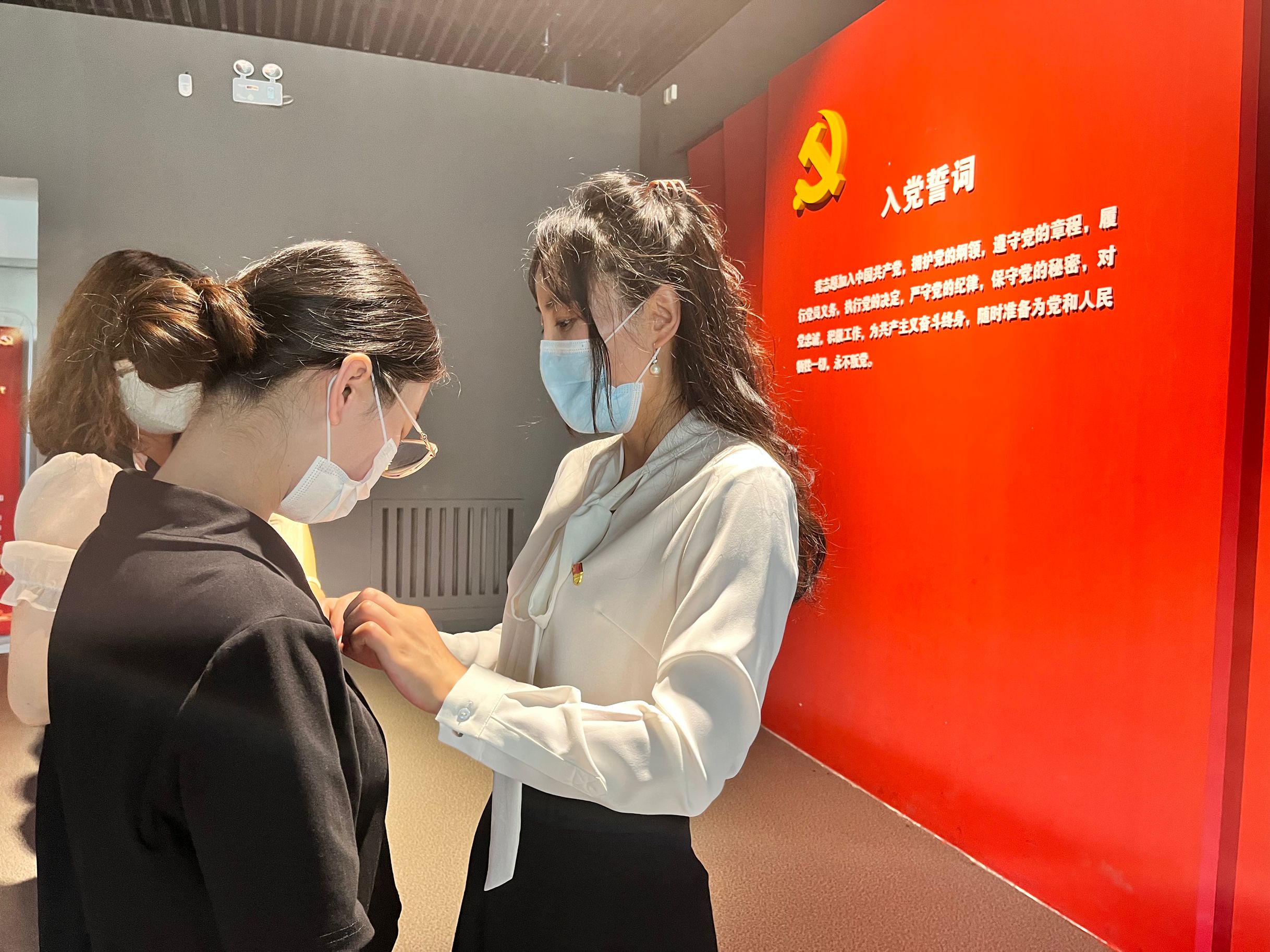 支部书记为预备党员佩戴党徽