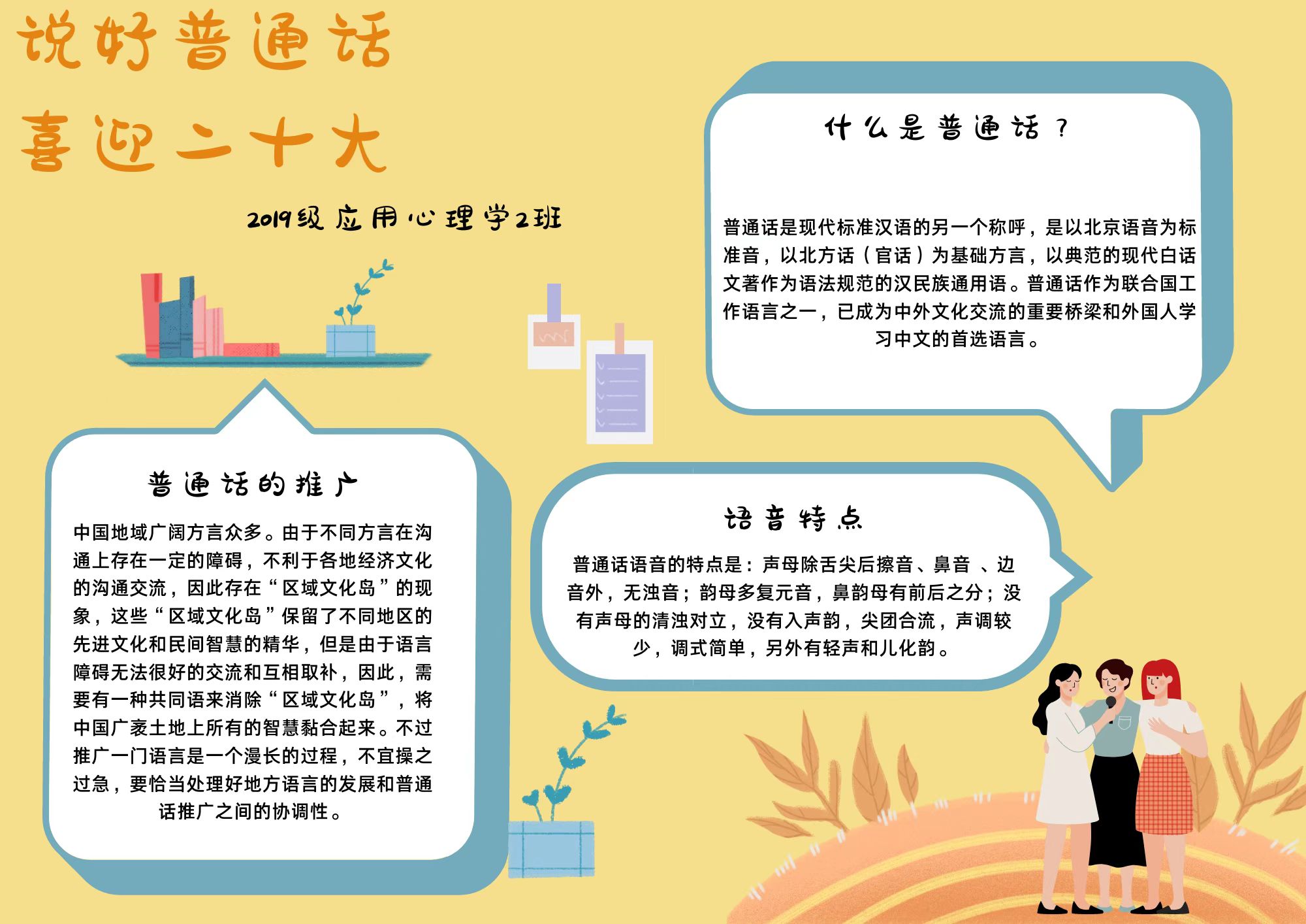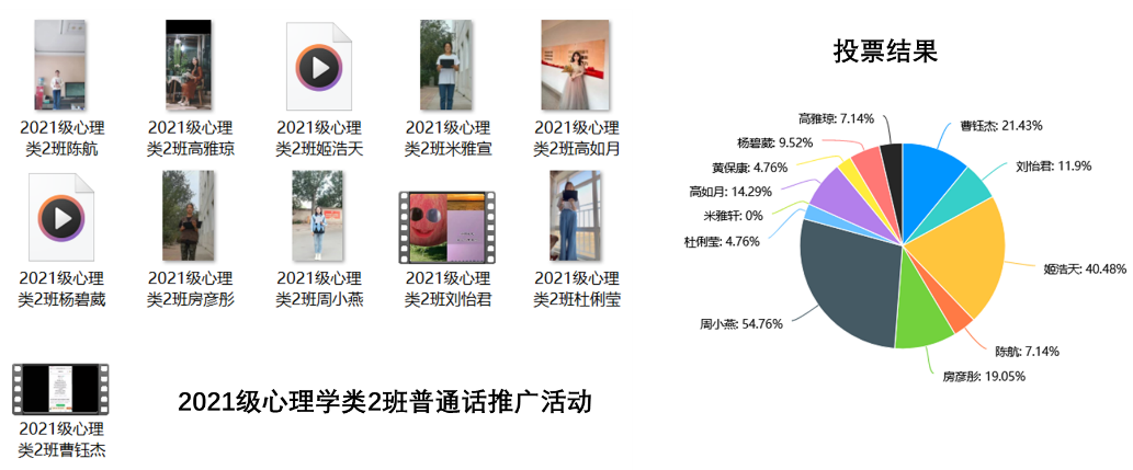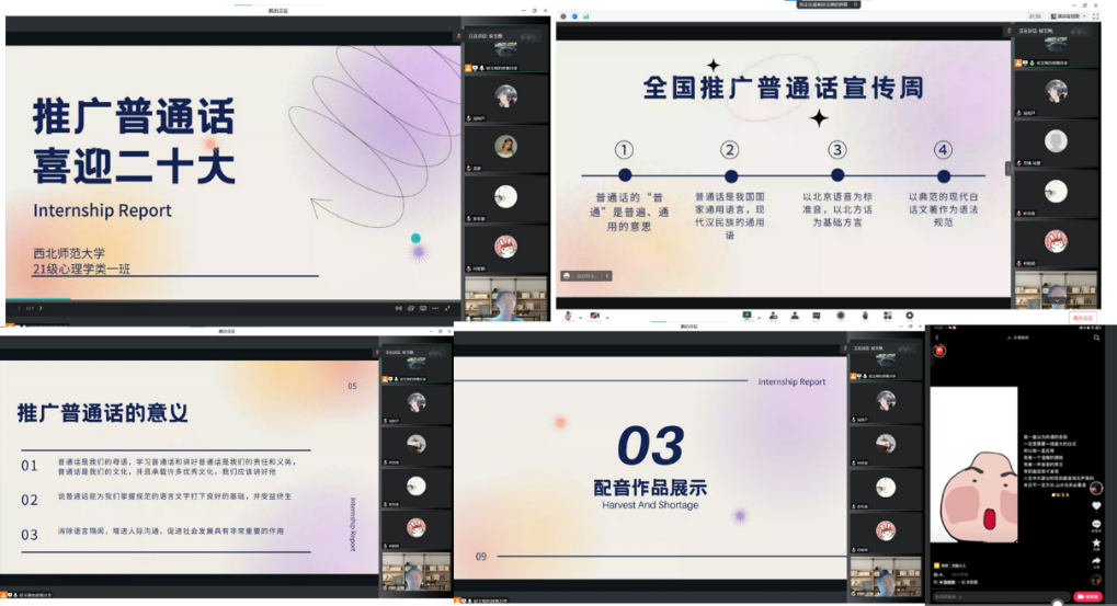 此次活动共包括以班级为单位的普通话推广宣传、普通话诵读学习、线上普通话朗诵比赛等活动。通过此次活动引导学生认识到推广普通话的重要意义,也通过丰富的朗诵内容,引导学生们认知到中国共产党在引领中国建设和发展过程中发挥的重要领导作用。