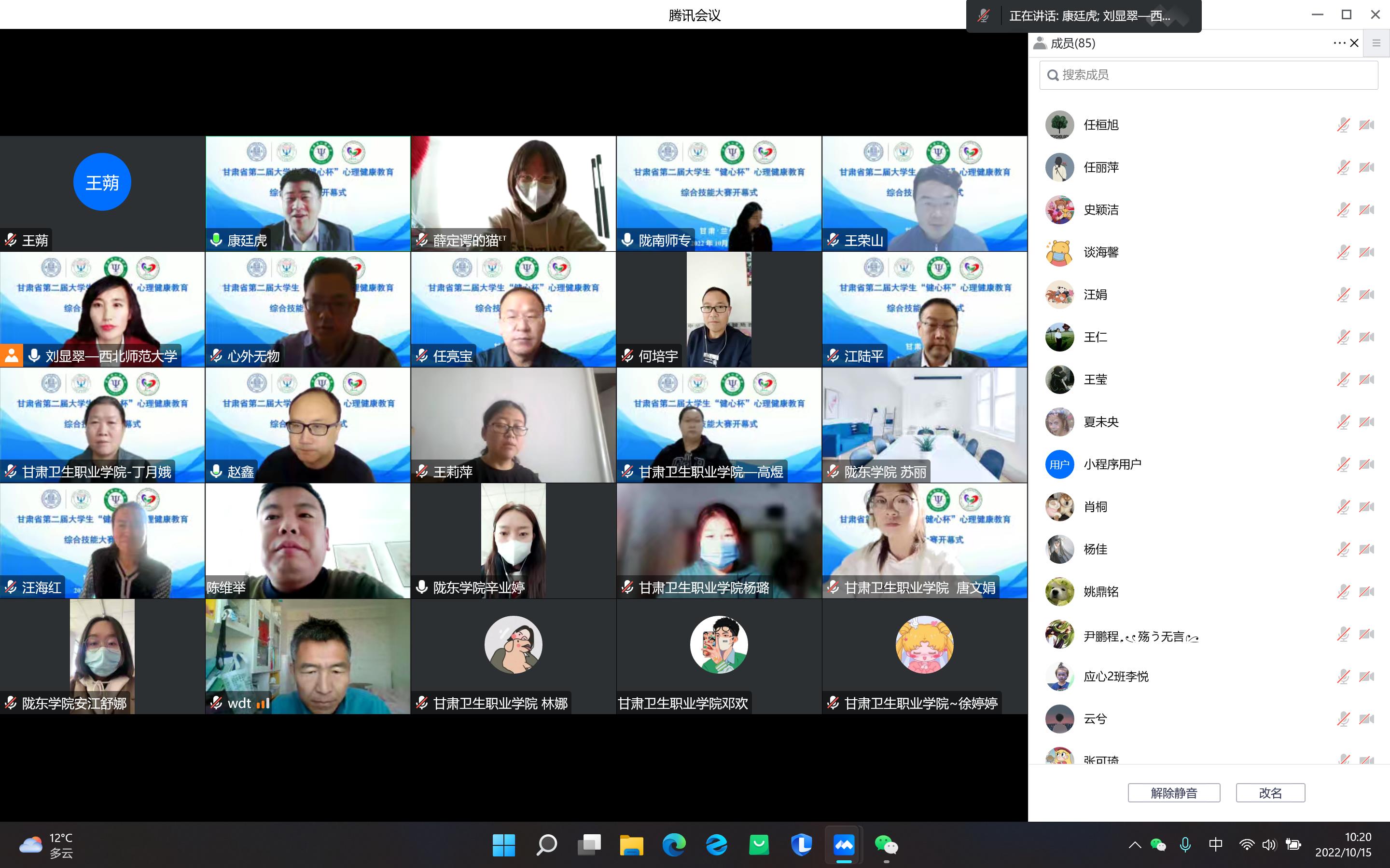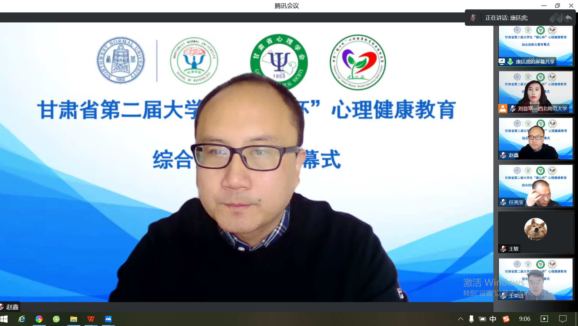甘肃省第二届大学生“健心杯”心理健康教育综合技能大赛的复赛开幕式于2022年10月15日召开。活动以线上方式进行,共有来自西北民族大学、西北师范大学、河西学院、陇东学院等11所院校的100多名师生参加,开幕式由新利体育副院长康廷虎教授主持。
