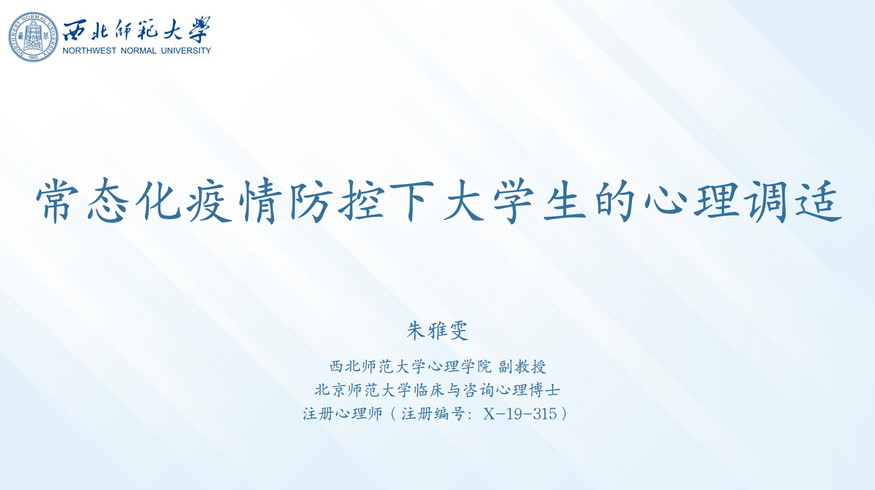 2022年10月29日早上9点,新利体育朱雅雯副教授应甘肃省教育厅邀请,面向全省高校师生作主题为《常态化疫情防控下大学生的心理调适》的在线直播讲座。